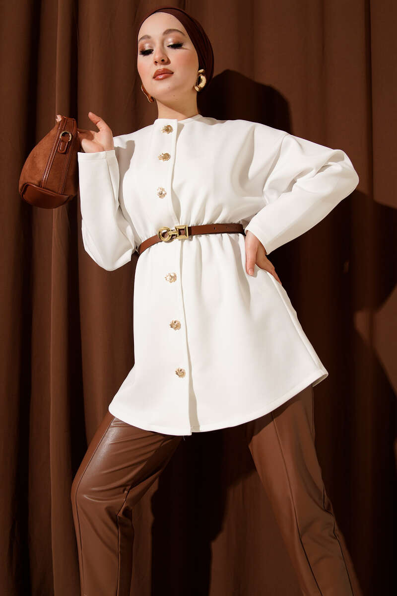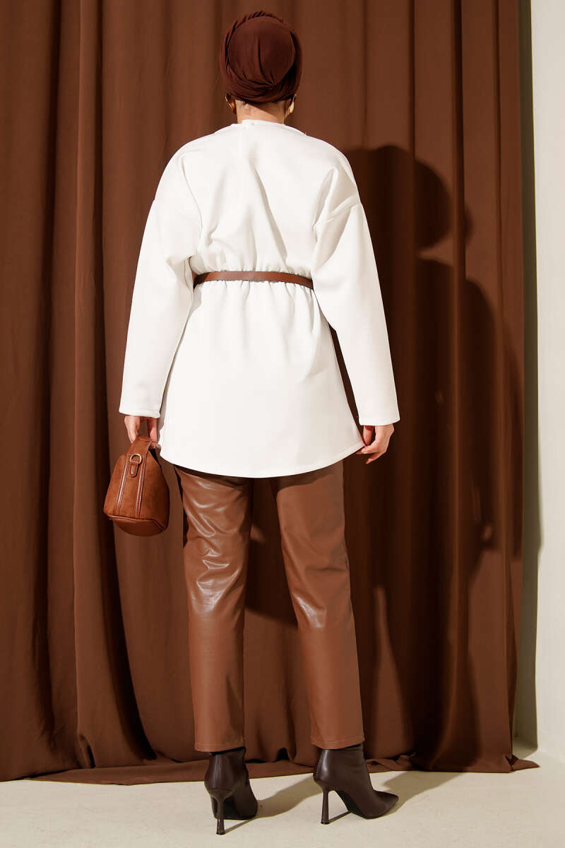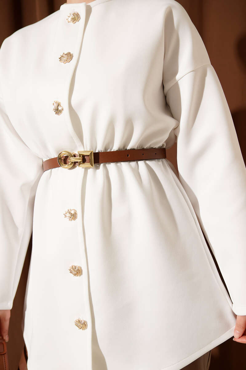 Bel Büzgülü Kemerli Scuba Ceket Kahve