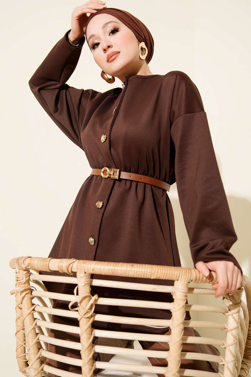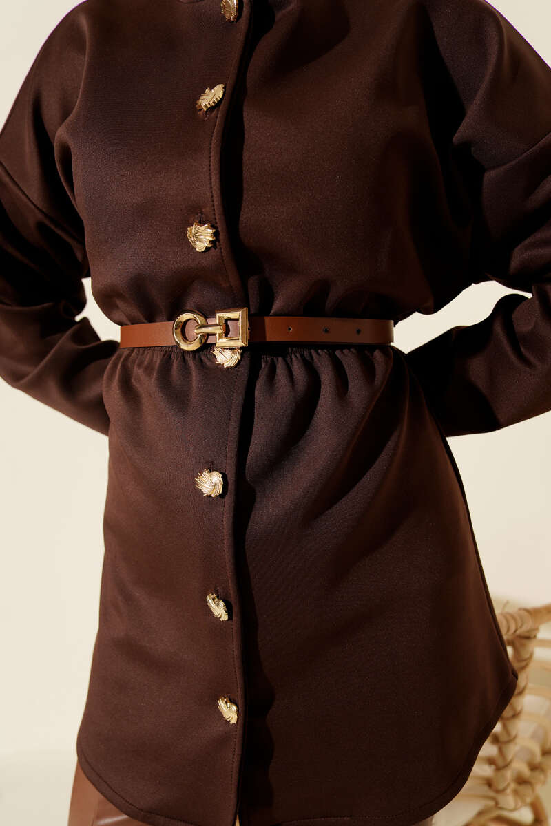 Gold Düğmeli Kemerli Sakallı Yelek Kahve