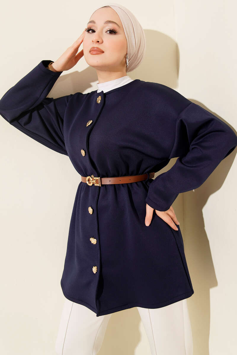 Bel Büzgülü Kemerli Scuba Ceket Siyah