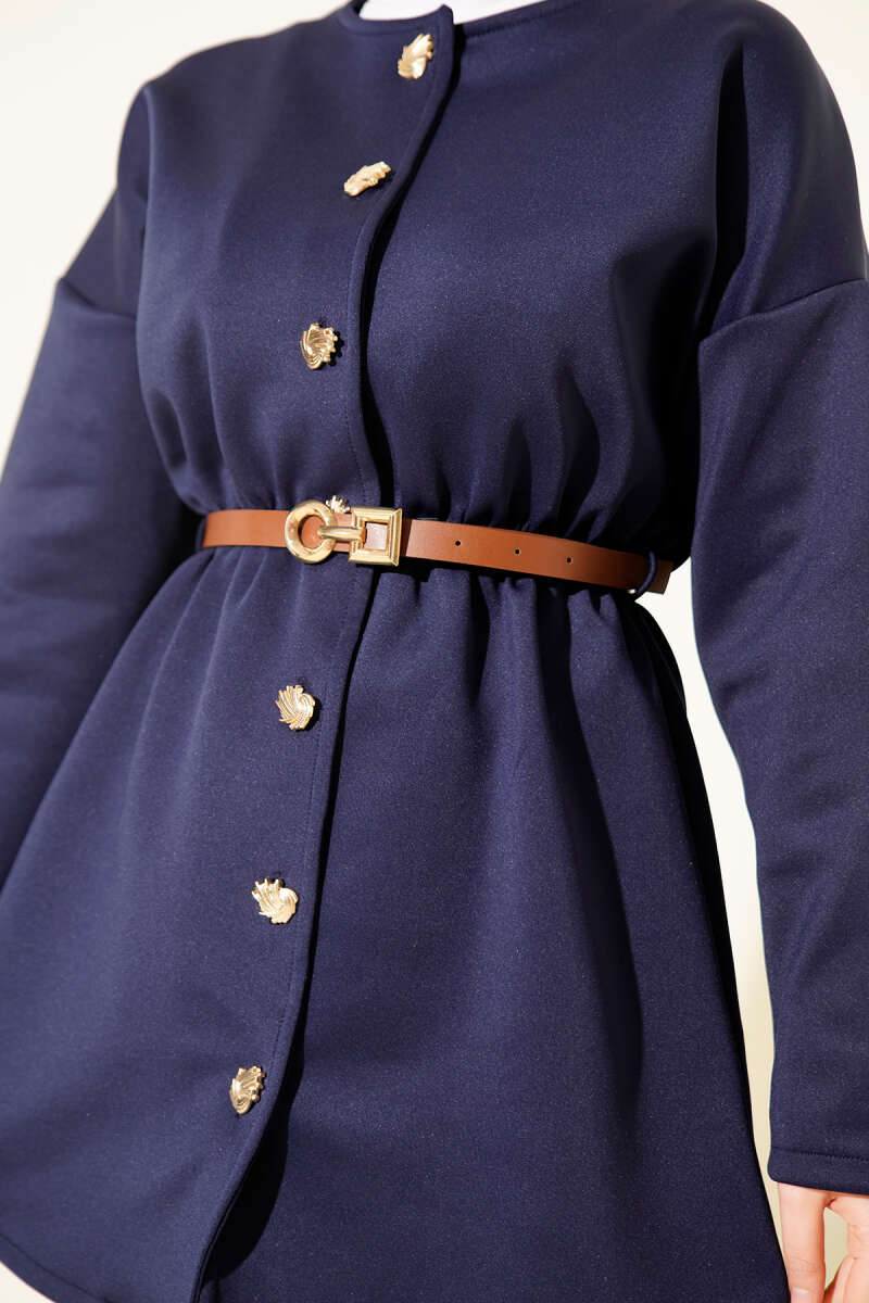 Bel Büzgülü Kemerli Scuba Ceket Kahve