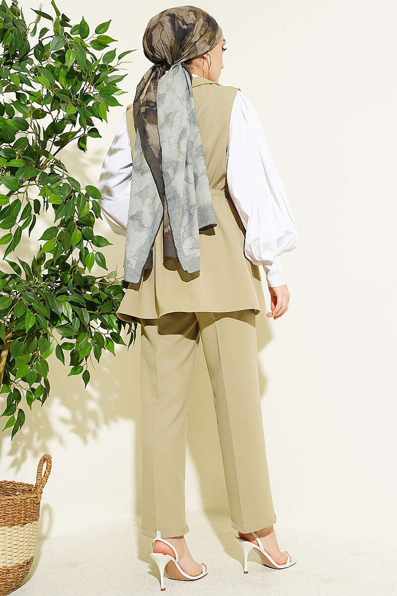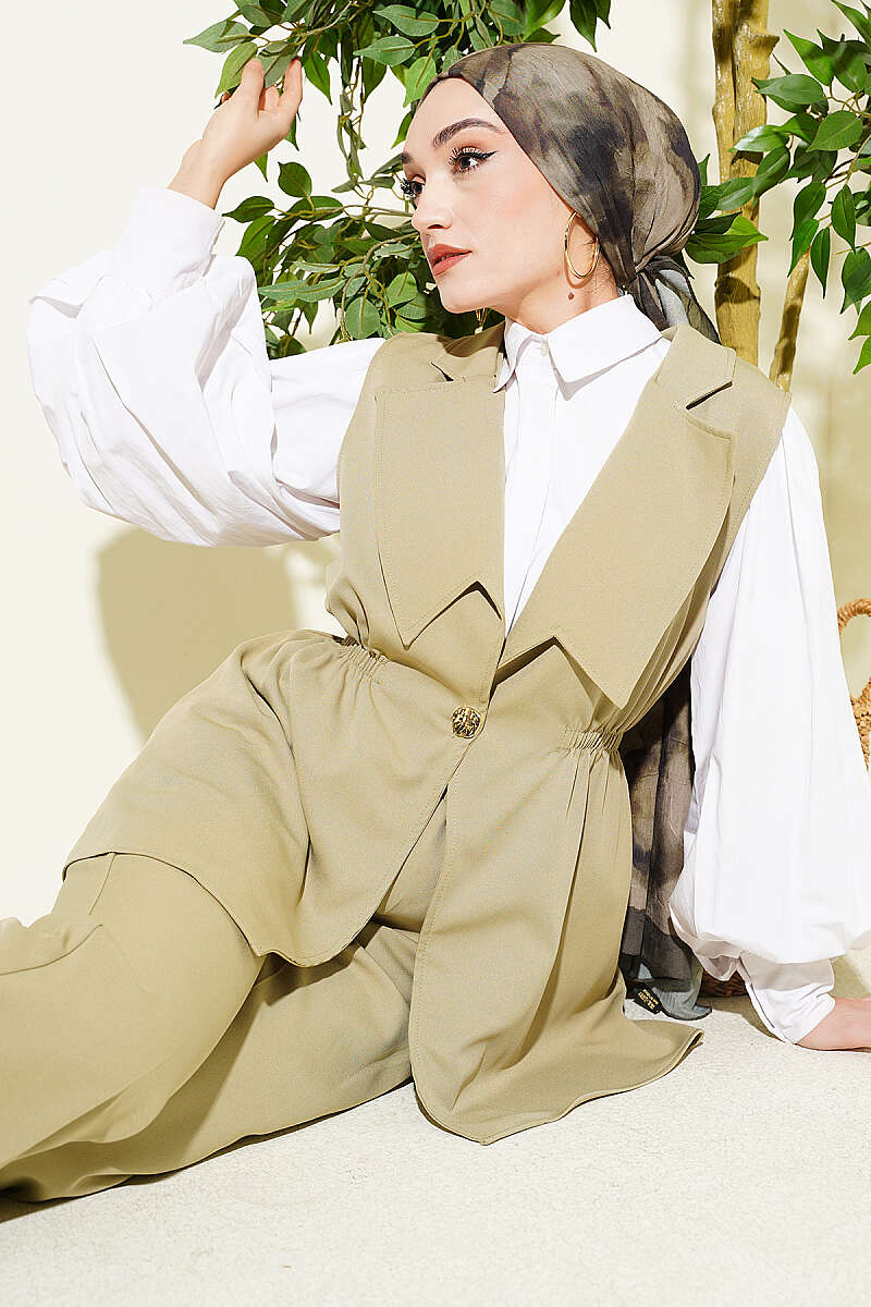 Belden oturan ve aşağıya doğru hafifçe genişleyen (peplum esintili) kesimi, vücut hatlarını nezaketle gizlerken feminen bir silüet sunar. Tek düğme detayı ve geniş yaka kesimiyle modern bir hava katar.Boru paça, yüksek bel pantolonu sayesinde boyunuzu daha uzun, duruşunuzu daha dik gösterir.