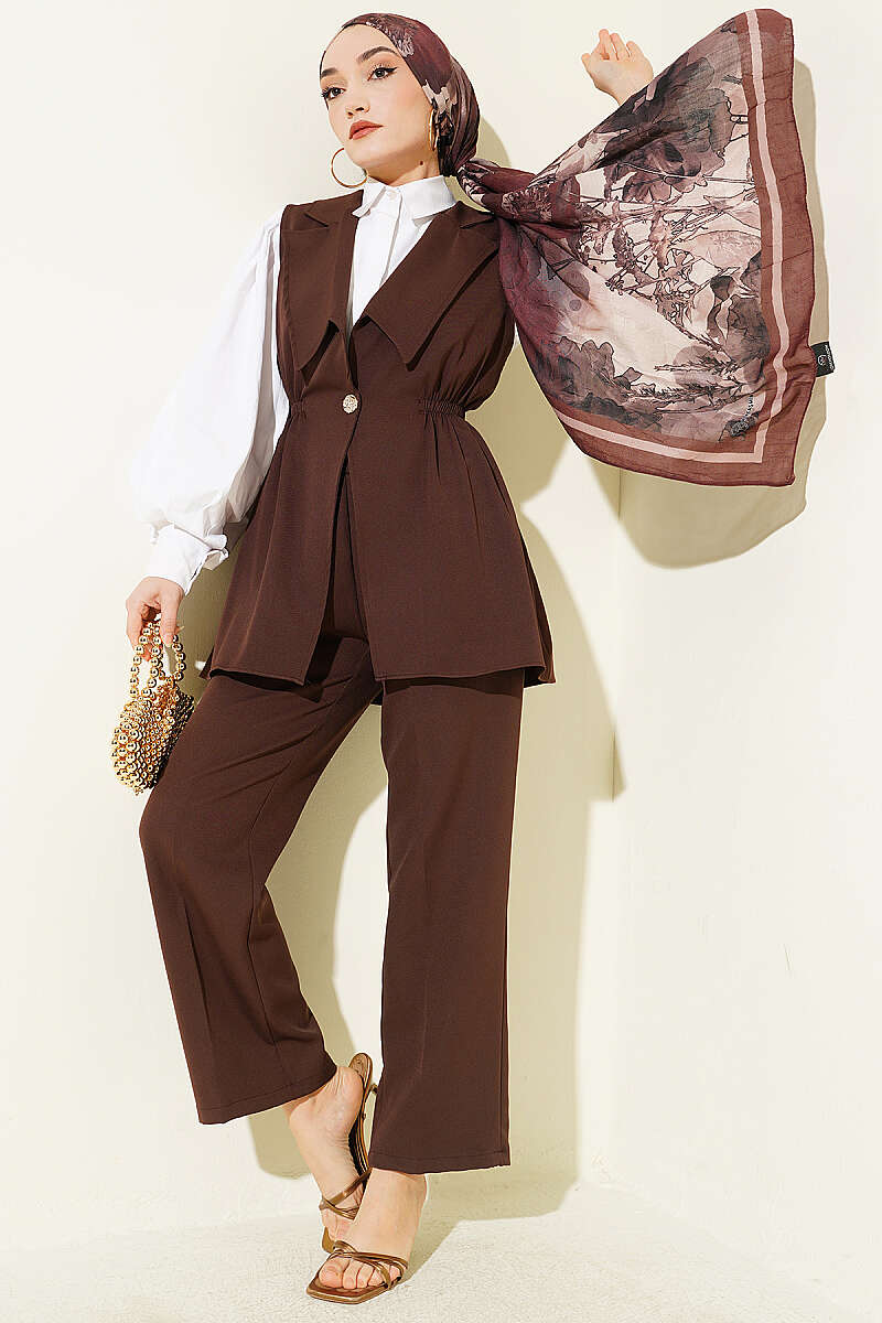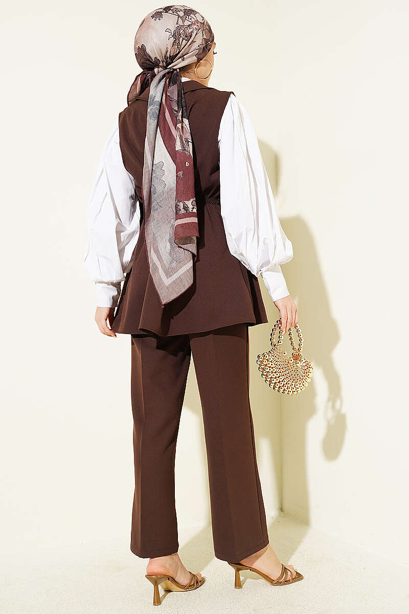 Belden oturan ve aşağıya doğru hafifçe genişleyen (peplum esintili) kesimi, vücut hatlarını nezaketle gizlerken feminen bir silüet sunar. Tek düğme detayı ve geniş yaka kesimiyle modern bir hava katar.Boru paça, yüksek bel pantolonu sayesinde boyunuzu daha uzun, duruşunuzu daha dik gösterir.