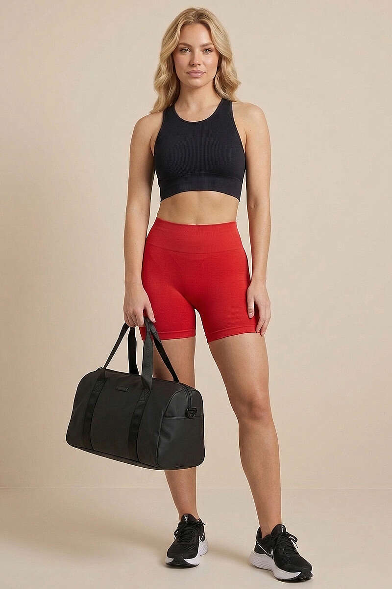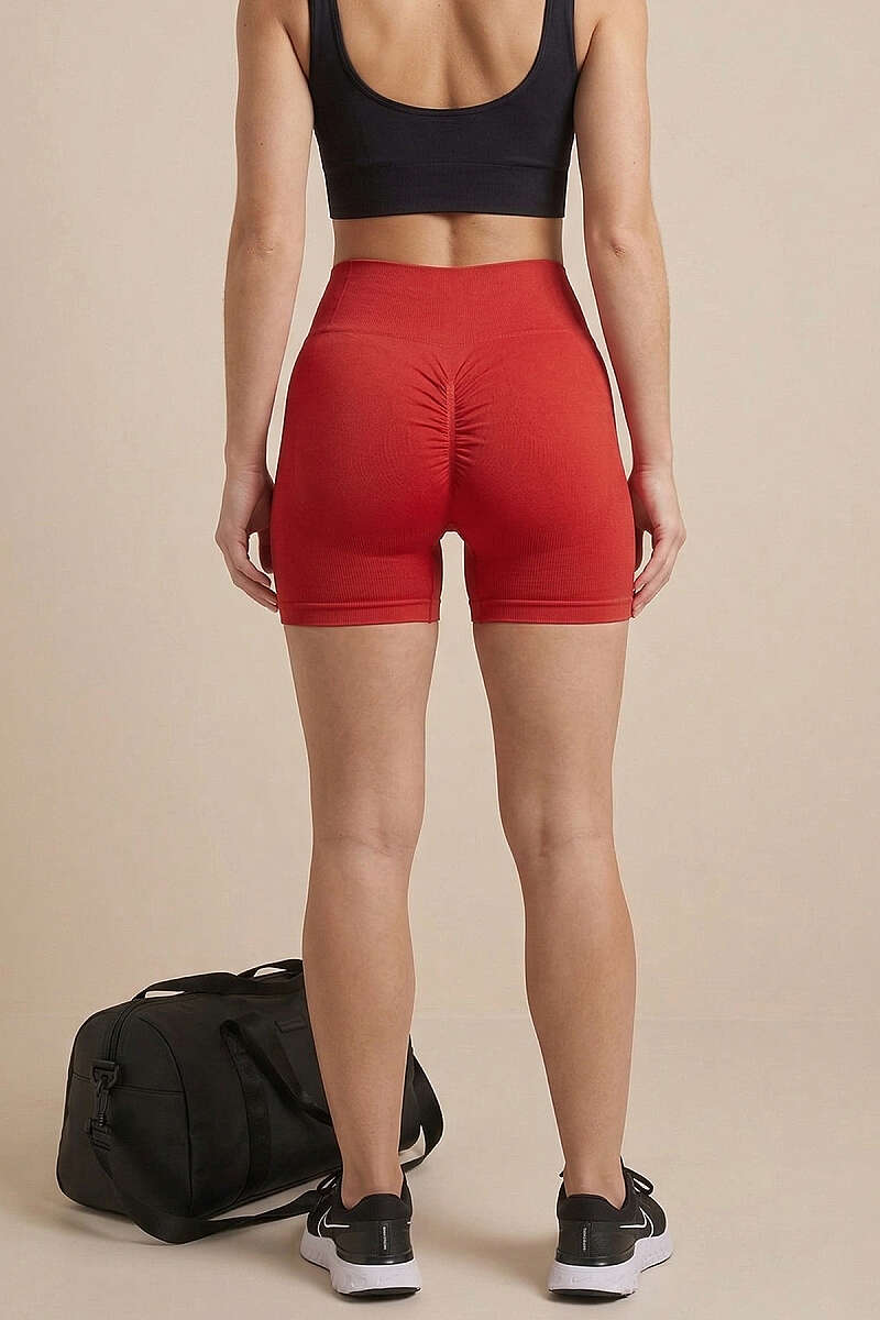 Bel Dikişli Sporcu Şort Kırmızı