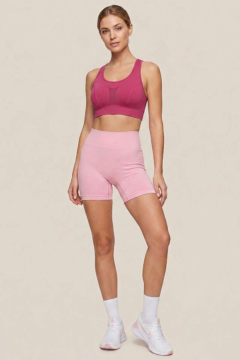 Bel Dikişli Sporcu Şort Pembe