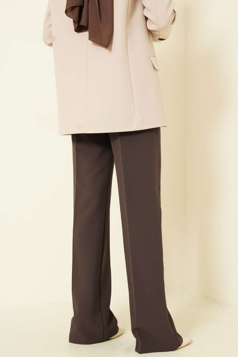 Pileli Geniş Paça Kumaş Pantolon Kahve
