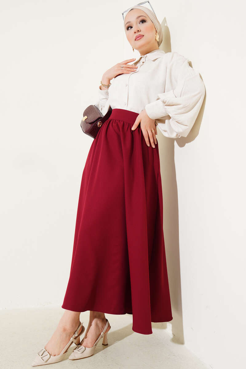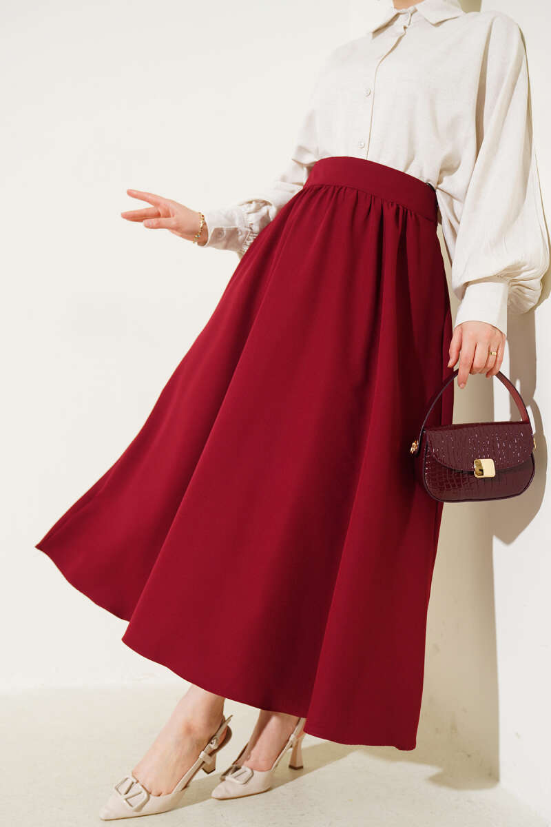 Beli Lastikli Ekose Desen Kloş Etek Bordo
