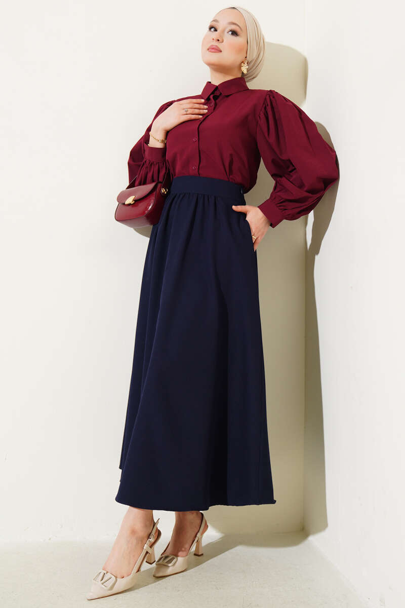 Klasik Yakalı Oval Kesim Mavi Gömlek