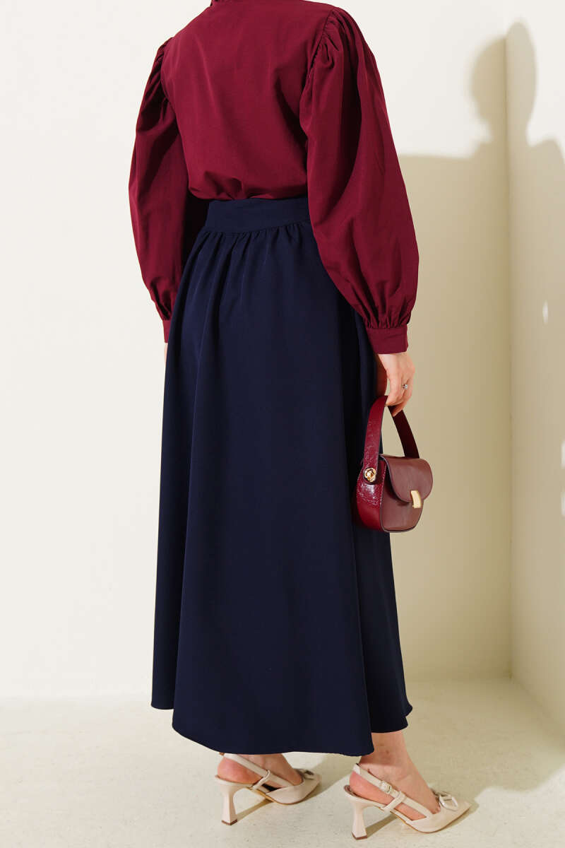 Ekose Desenli Kloş Kaşe Etek Siyah