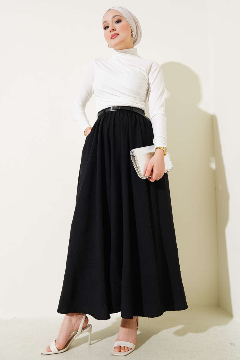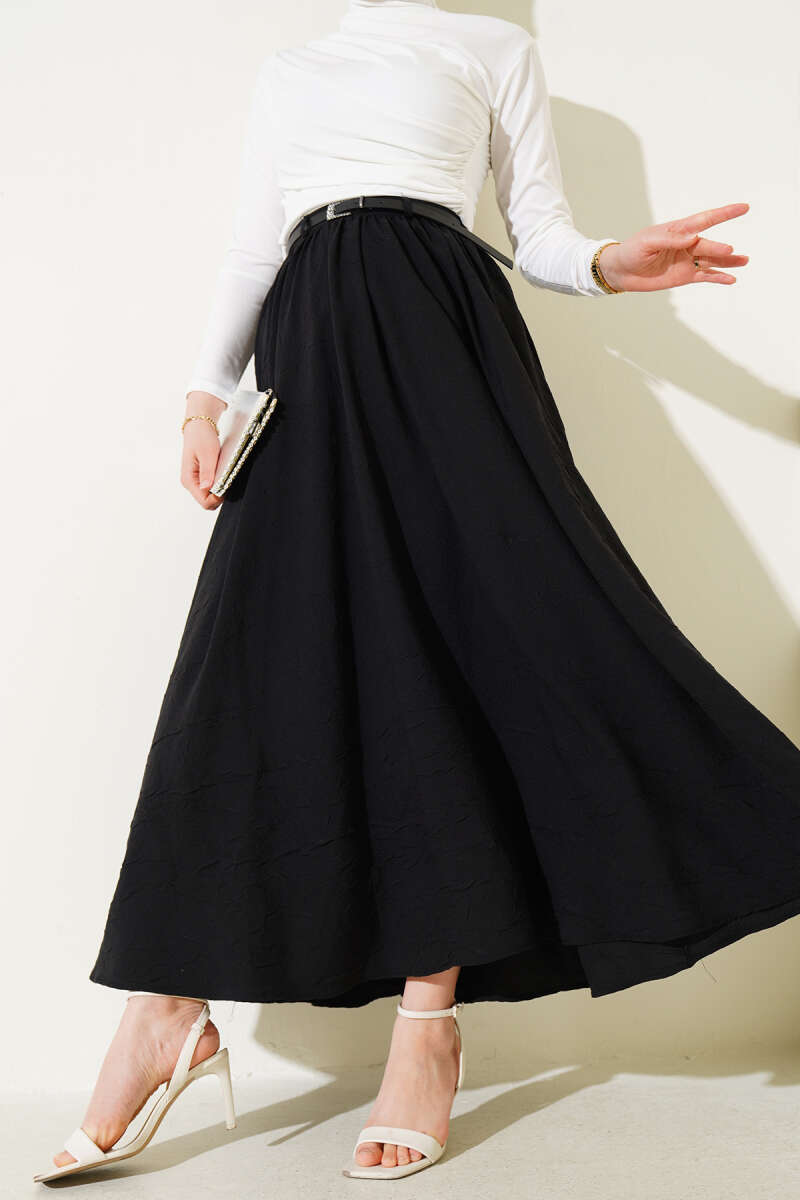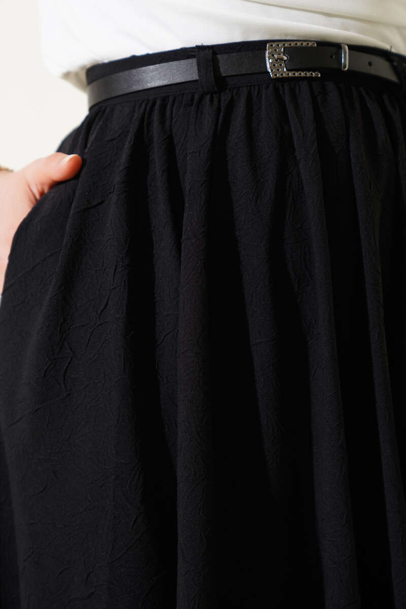 Bel Fermuarlı Kemerli Kraş Etek Lacivert