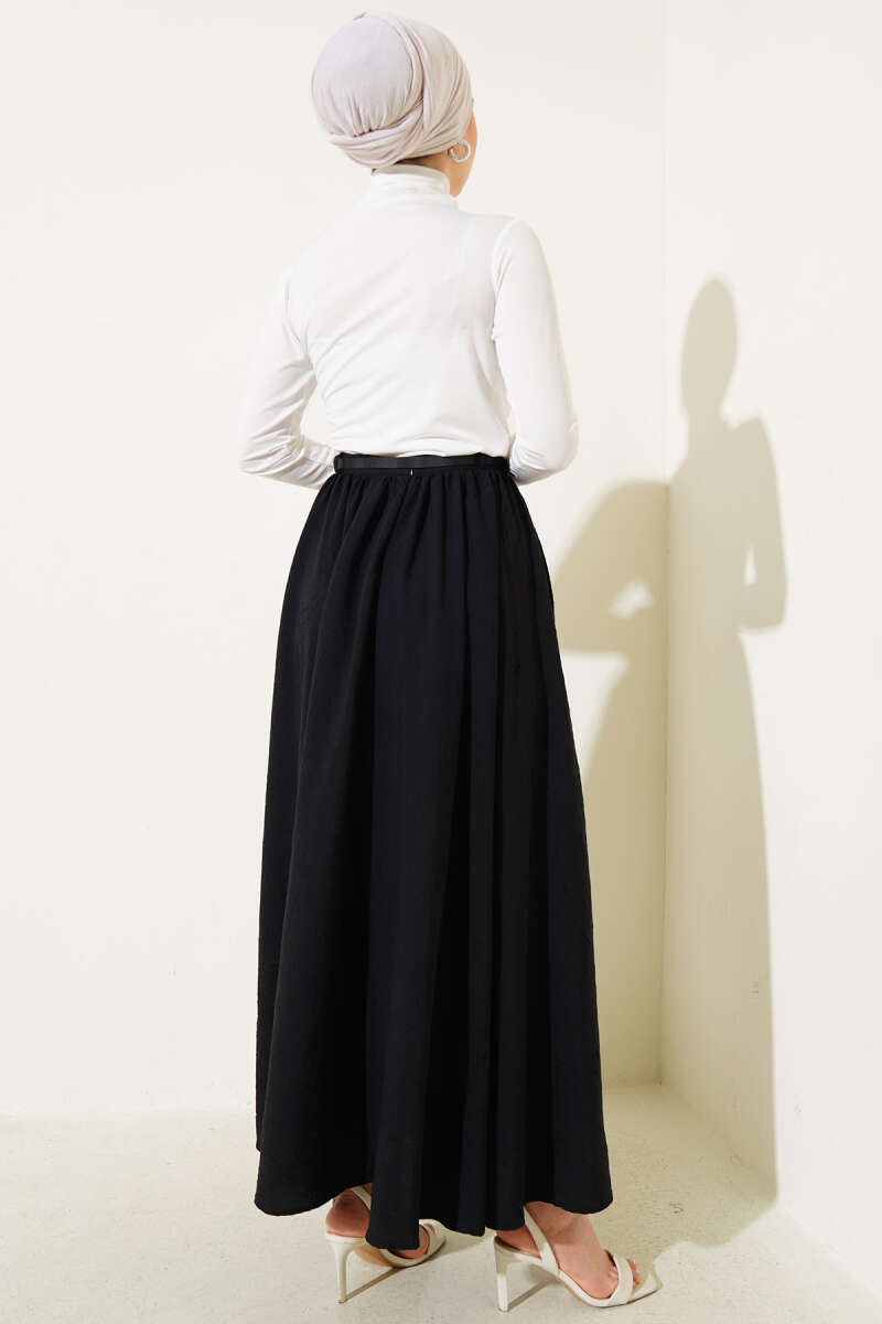Ekose Desenli Düğmeli Kloş Etek Haki
