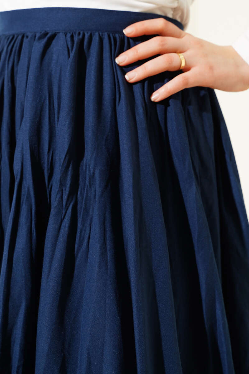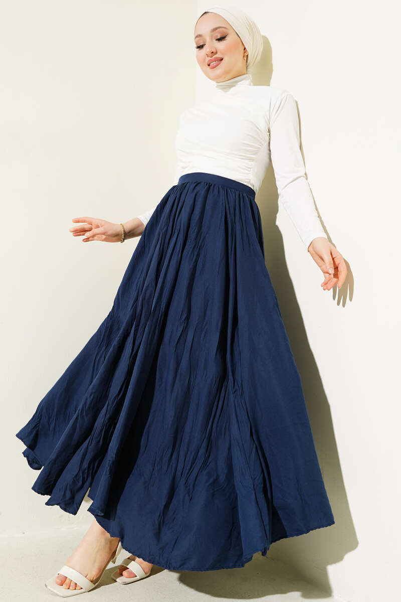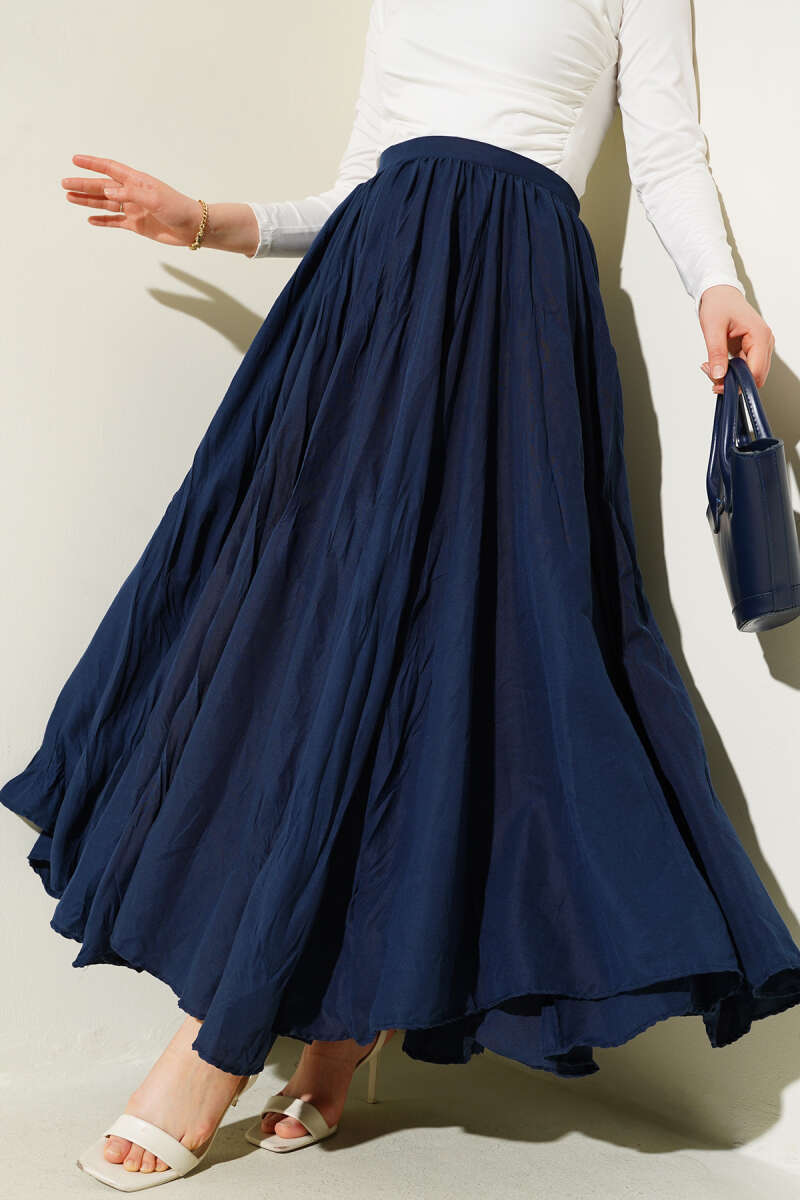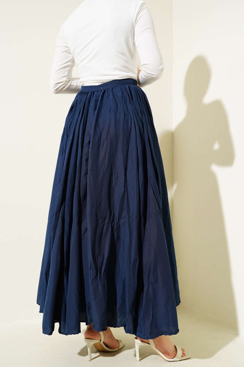 Beli Kemerli Lastikli Pileli Etek Lacivert