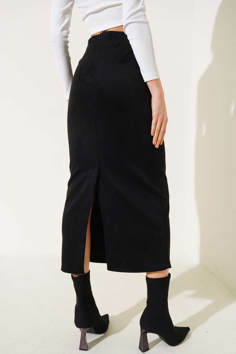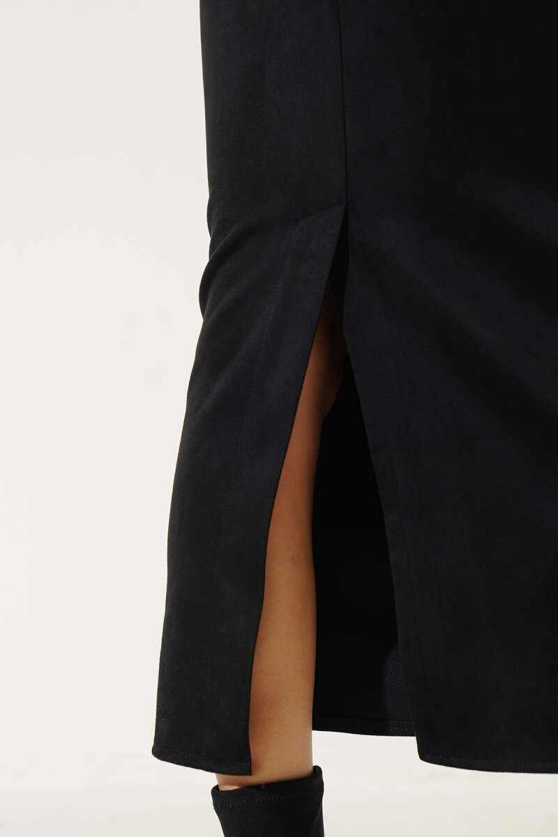 Çoban Dikiş Detaylı Triko Tunik Siyah