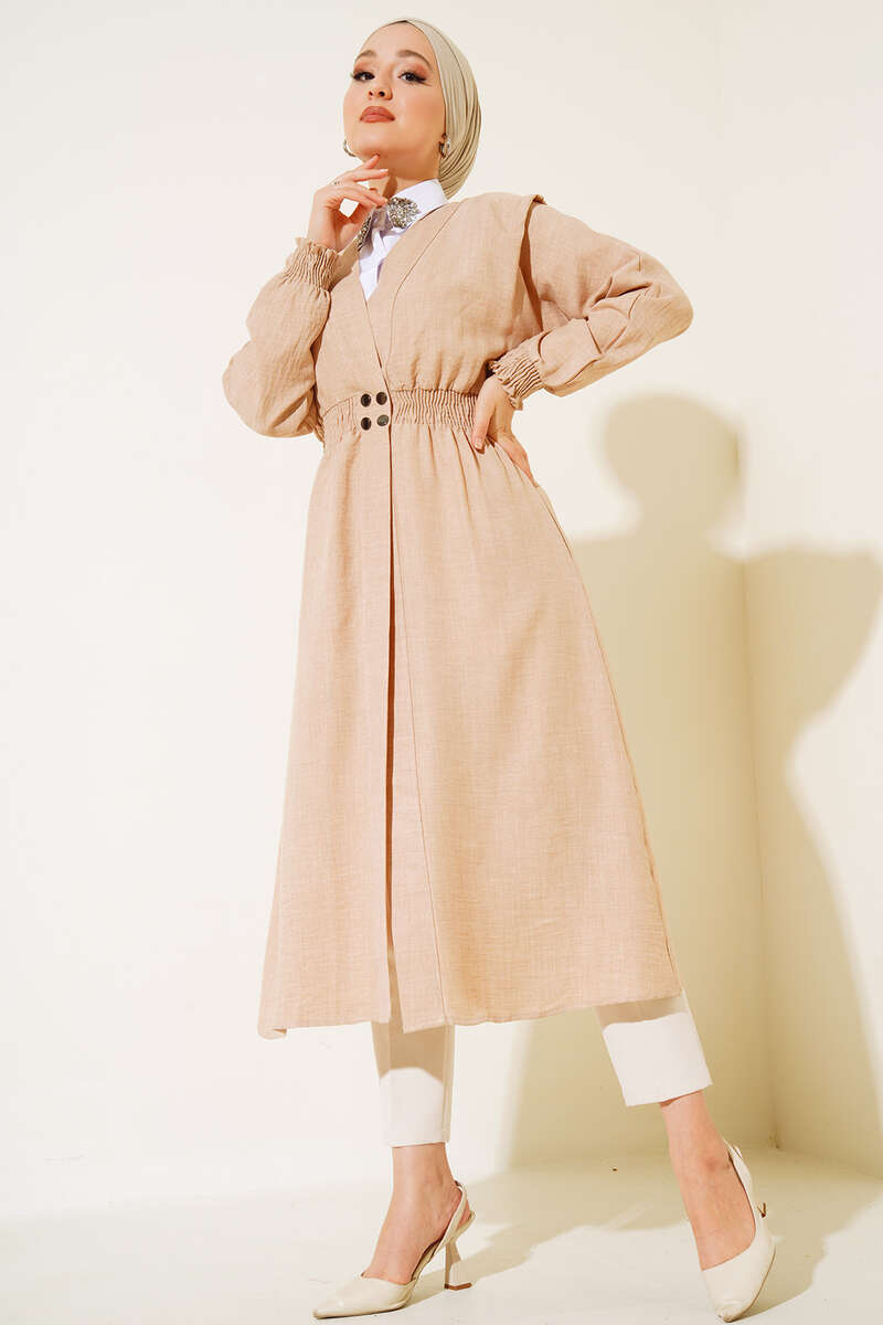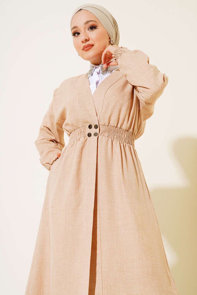 Bel Gipeli Çıtçıt Düğmeli Kap Bej