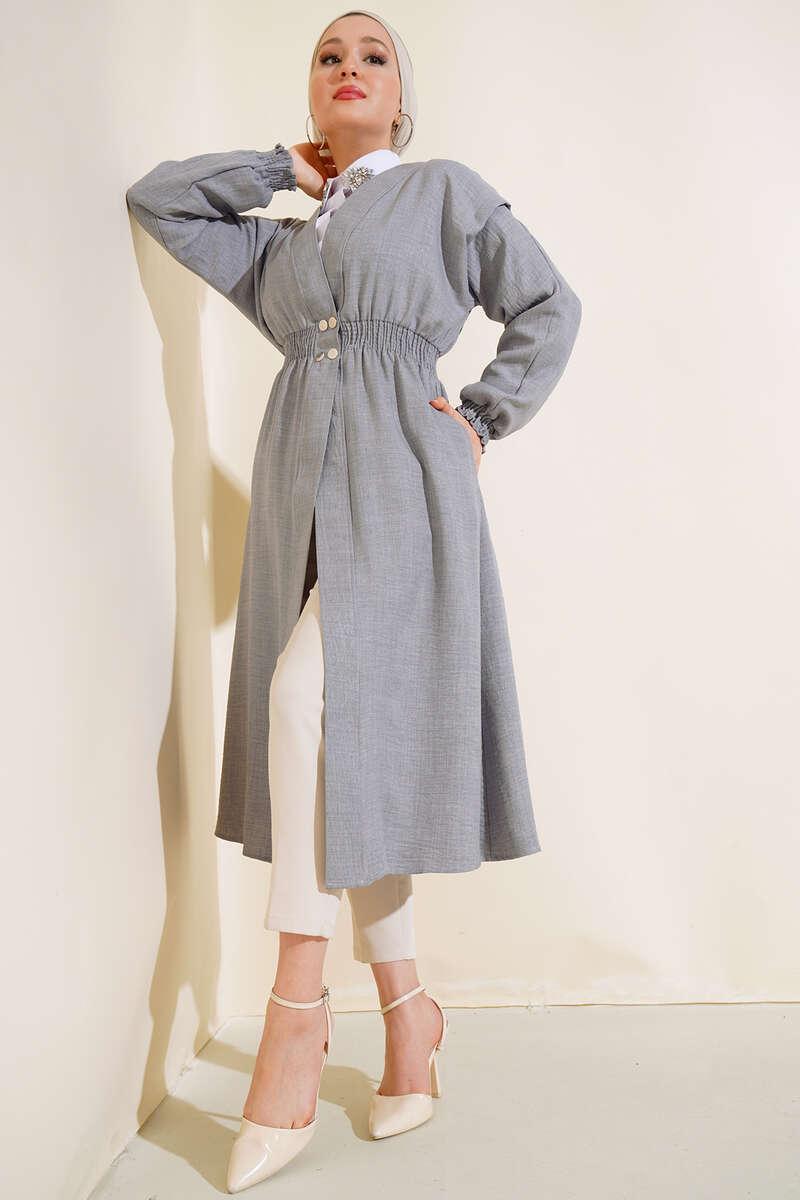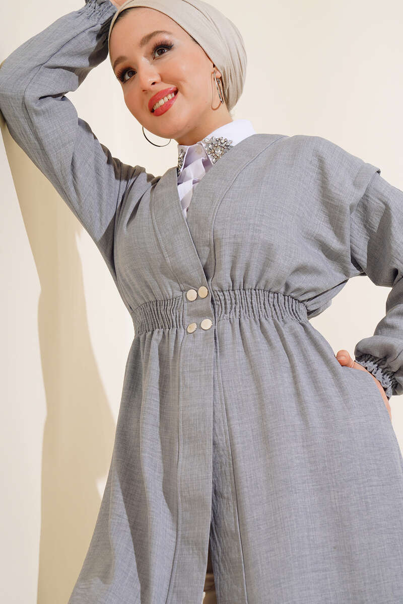 Bel Gipeli Çıtçıt Düğmeli Kap Gri