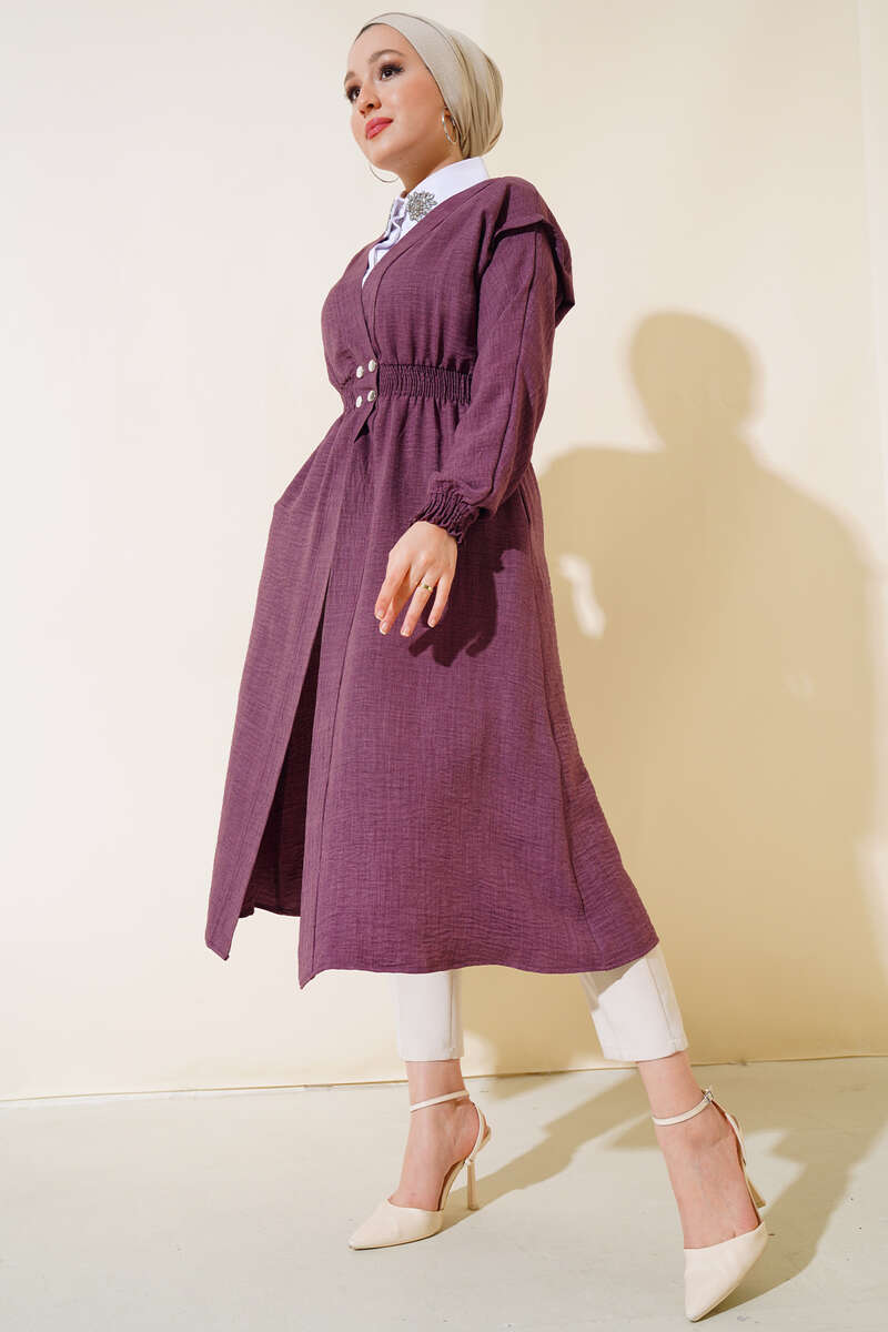 Yeni sezon kap modelimiz şık tasarımıyla beğenileri üzerinde toplamaktadır. Beli giperli olan kap dört adet çıtçıt düğmeye sahiptir. Kap modelimiz ceplidir. Omuzları kat detaylıdır. Bilekleri de gipelidir. Renk seçeneklerimiz mevcuttur.