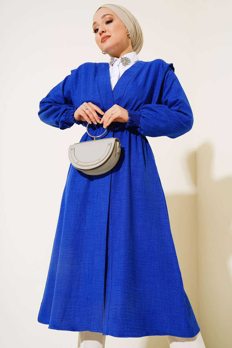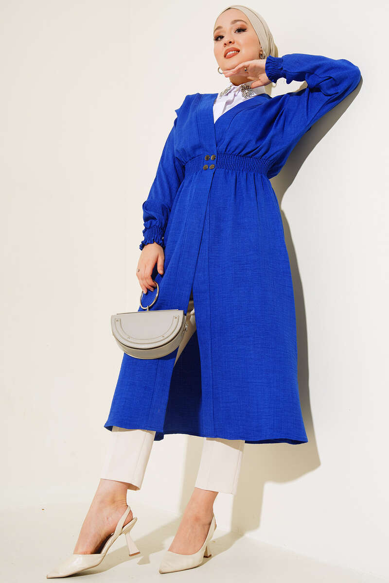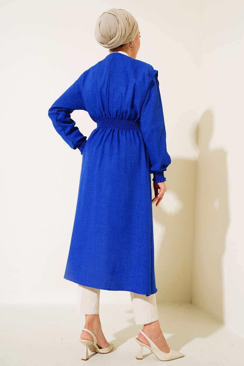 Yeni sezon kap modelimiz şık tasarımıyla beğenileri üzerinde toplmaktadır. Beli giperli olan kap dört adet çıtçıt düğmeye sahiptir. Omuzları kat detaylıdır. Bilekleri degipelidir.