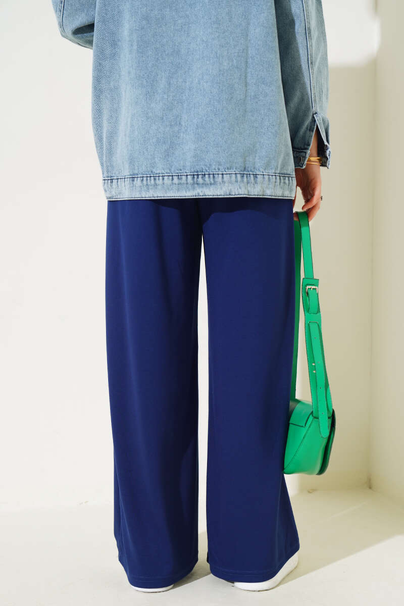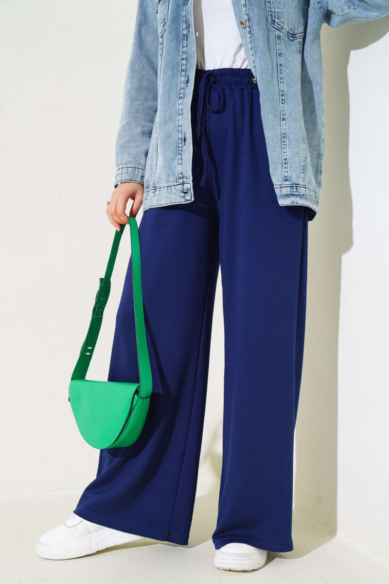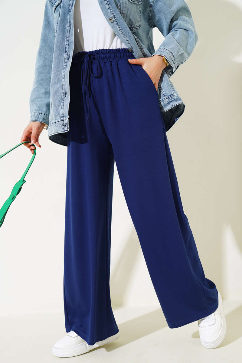 Bel İp Bağlamalı Bol Pantolon Lacivert