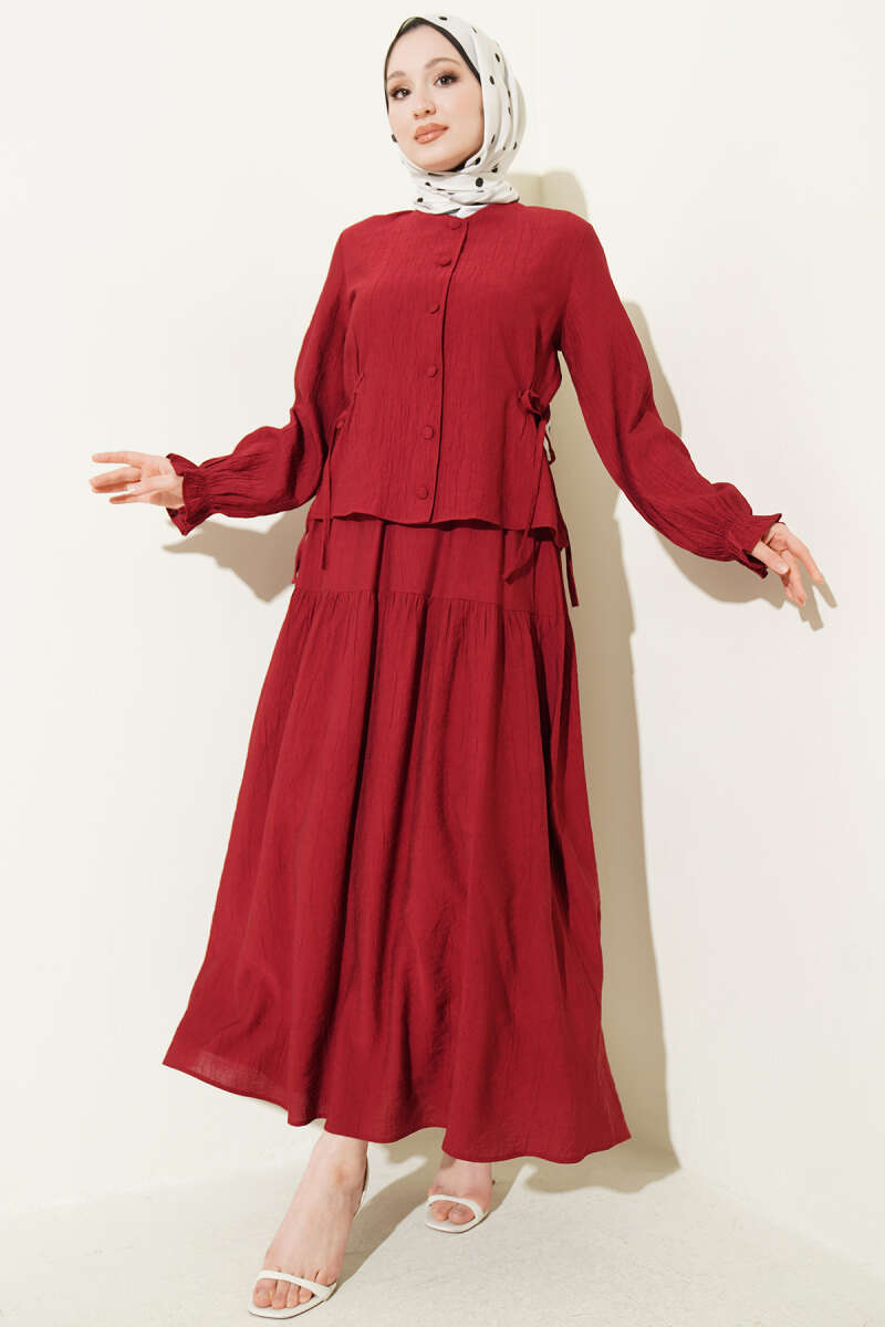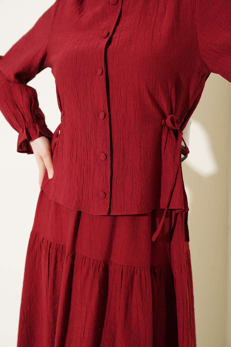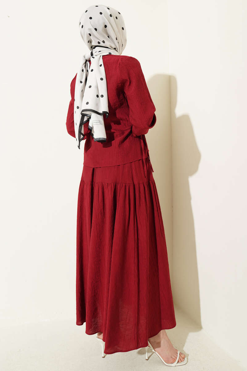 Bel İp Bağlamalı Etekli İkili Takım Bordo