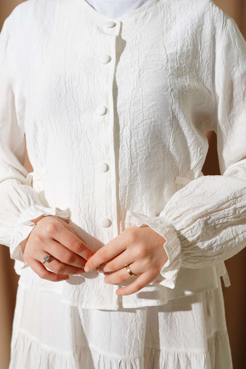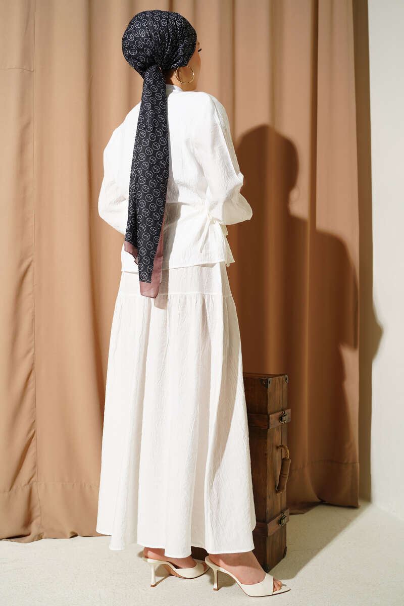 Bel İp Bağlamalı Etekli İkili Takım Ekru