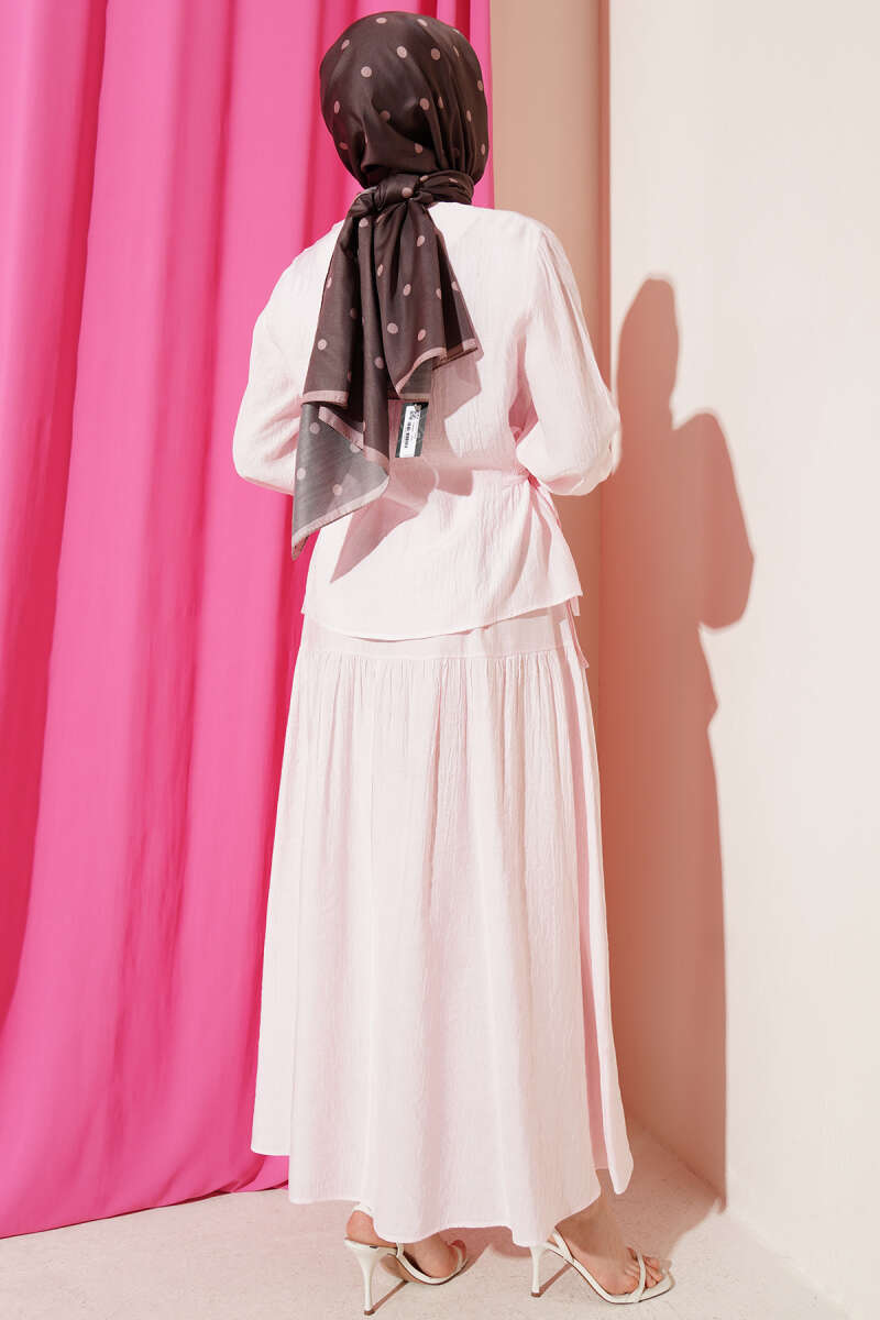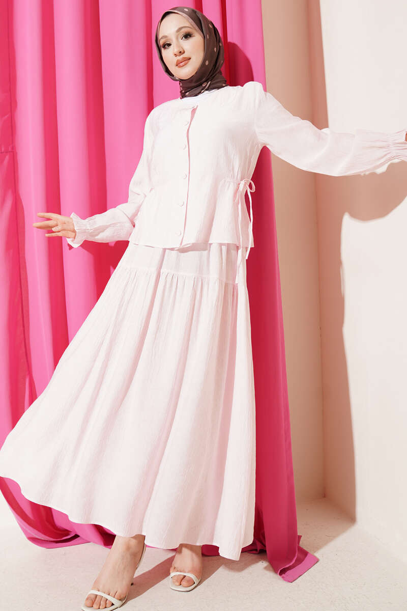 Bel İp Bağlamalı Etekli İkili Takım Pembe