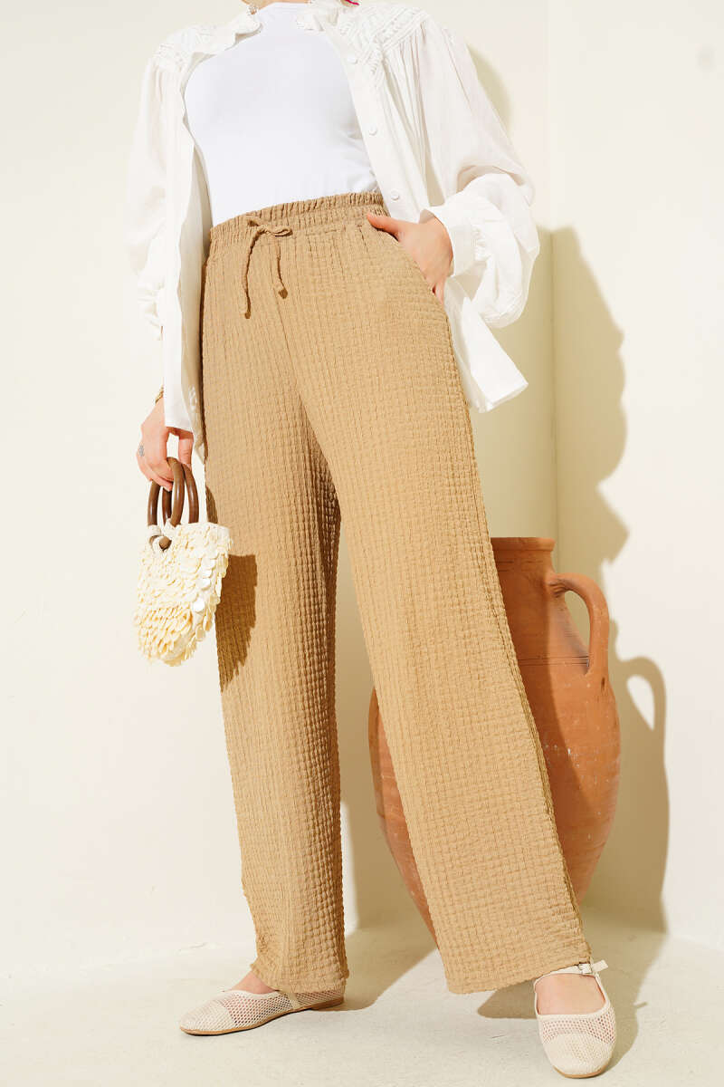 Angel Baskılı Bel Lastikli İpli Pantolon Füme
