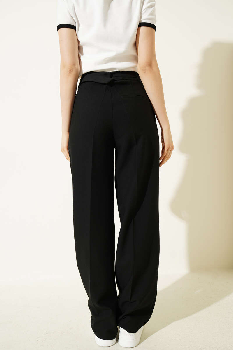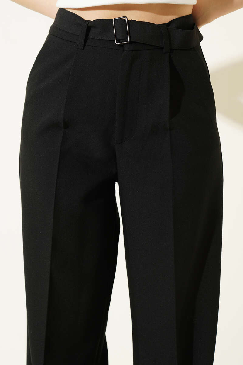 Bel Kemerli Pileli Salaş Pantolon Siyah