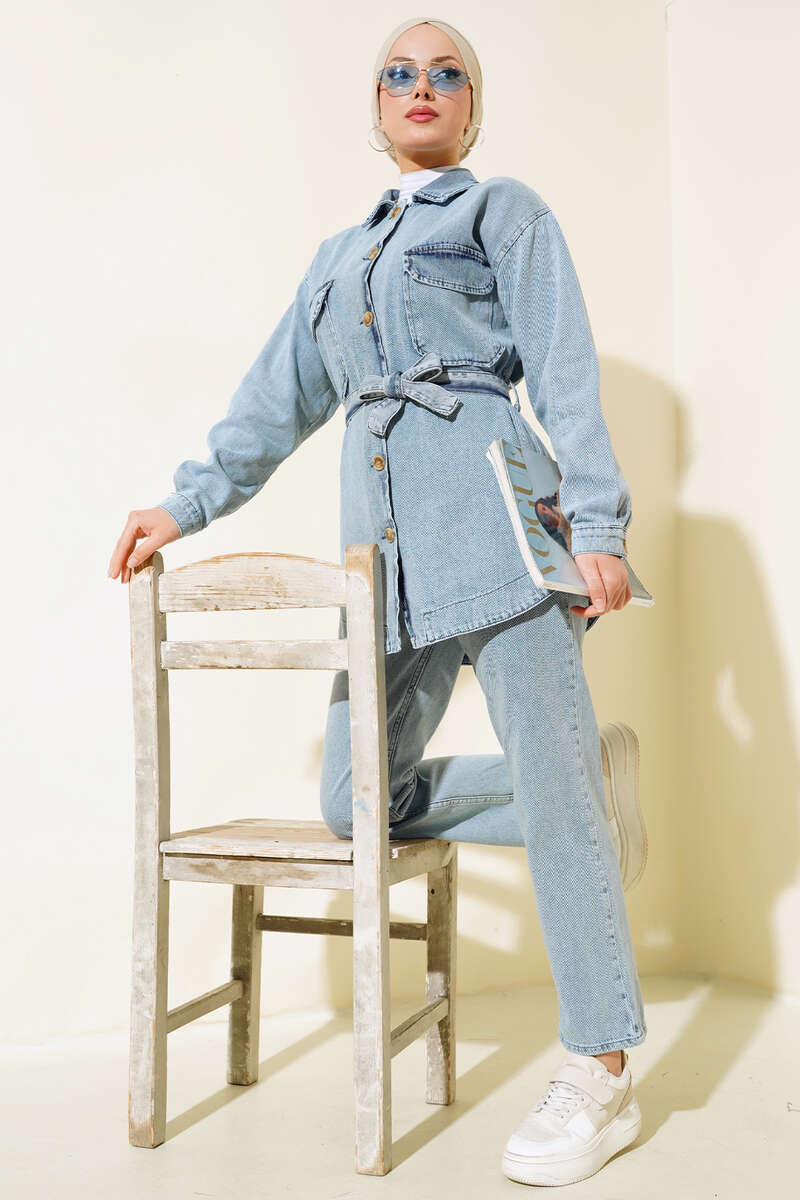 Yeni sezon ikili takımımız favorileriniz arasında girecektir. Ceketimizin önü boydan düğmelidir. Göğsünde iki adet kapaklı cebi vardır. Kol bilekleri manşetli ve düğmelidir. Ceketimizin belinde iki adet kemer köprüsü olup, bir adet kuşağı vardır. Pantolonumuzun beli lastiklidir. İki adet cebi vardır. Hem şık hem sportif takımımız favoriniz olacaktır.