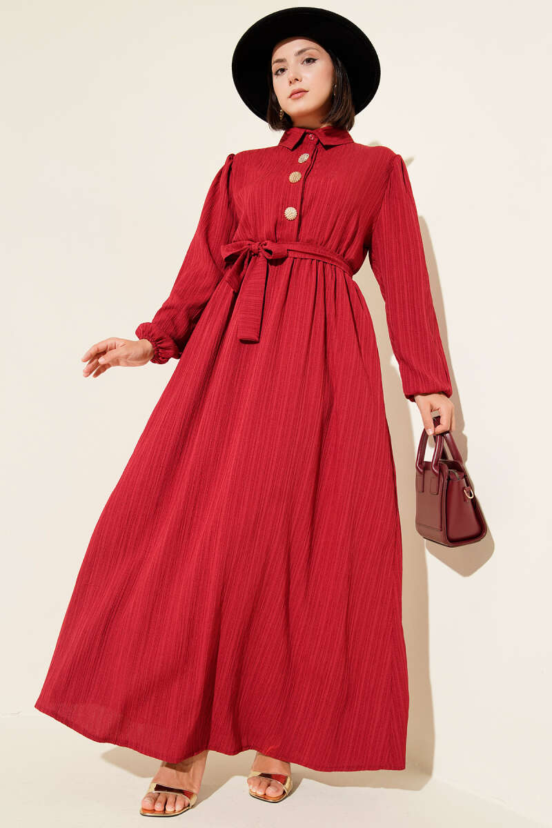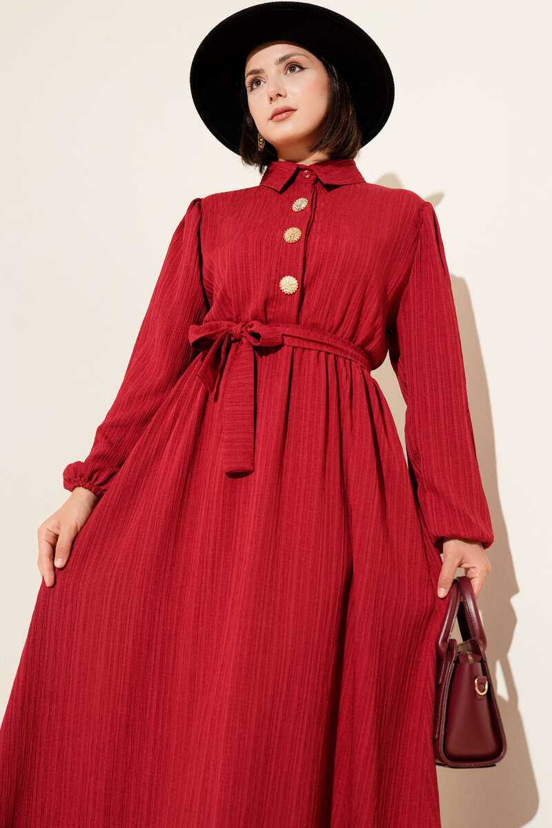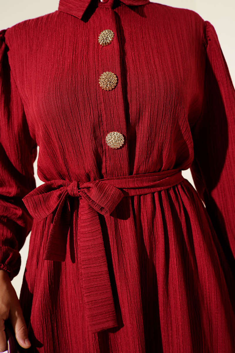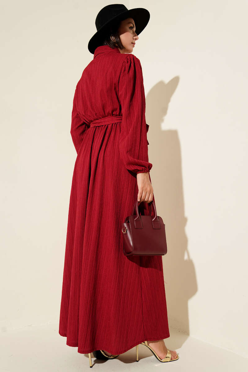 Bilek Bağlamalı Kuşaklı Abiye Elbise Bordo
