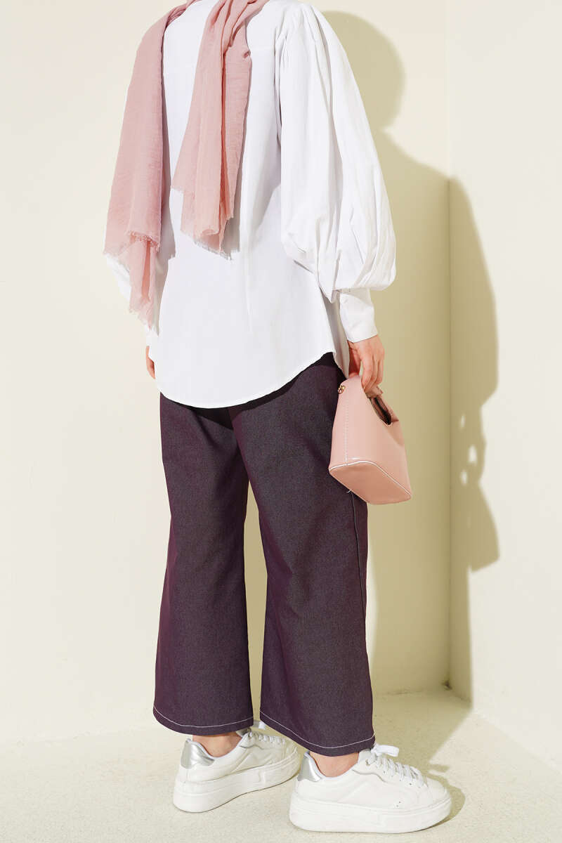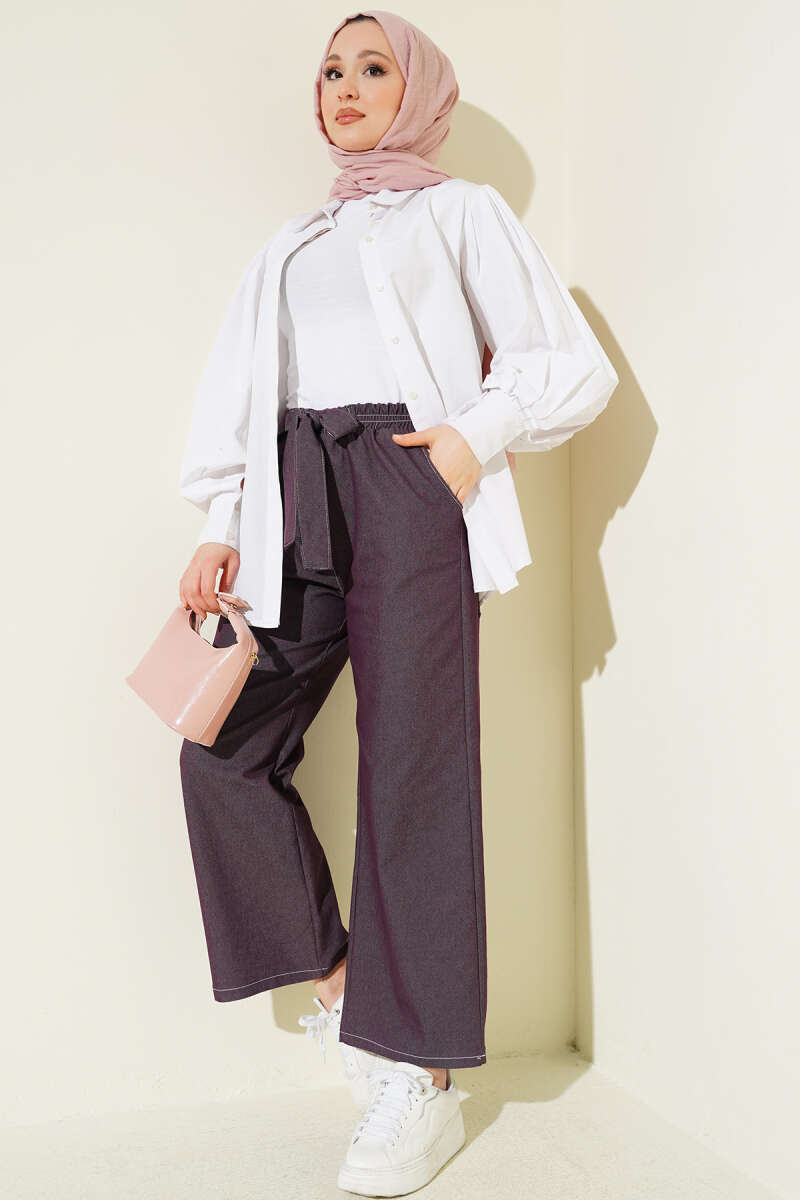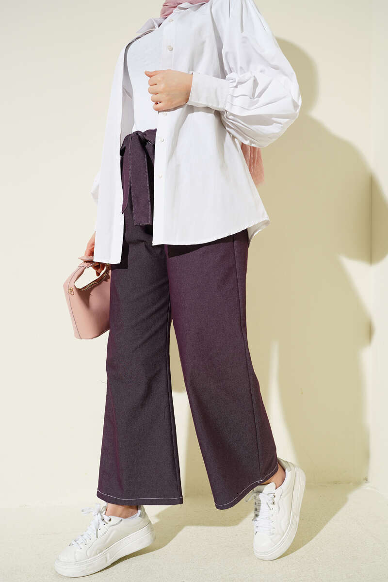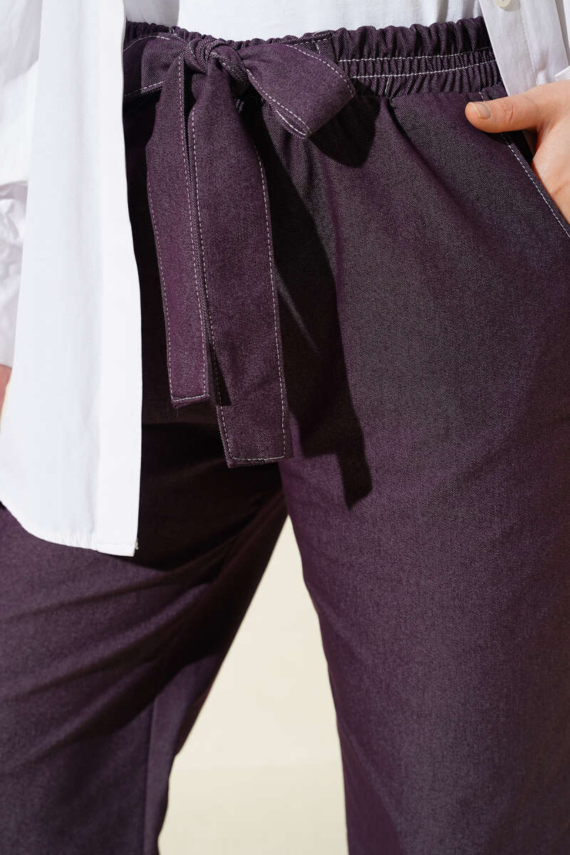 Bel Kuşaklı Lastikli Pantolon Mürdüm