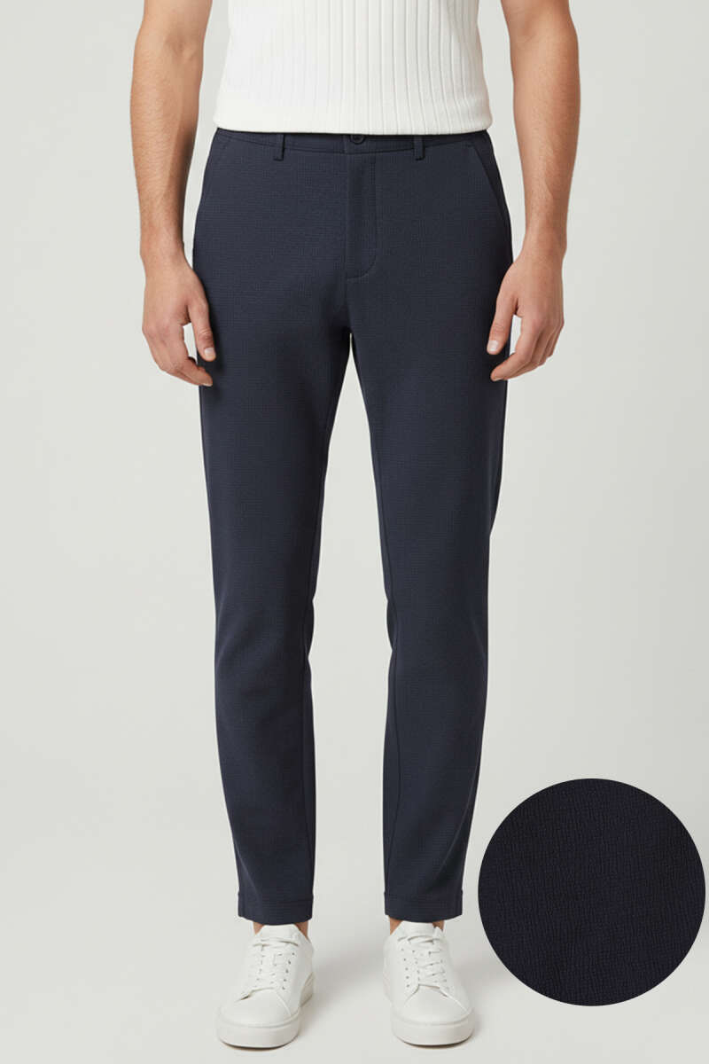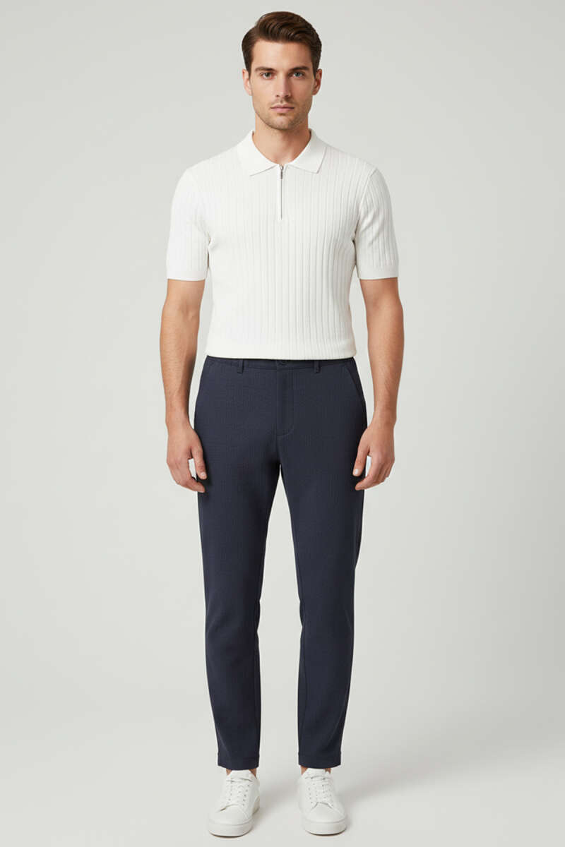 Bel Lastik Detaylı Dar Paça Erkek Pantolon Lacivert
