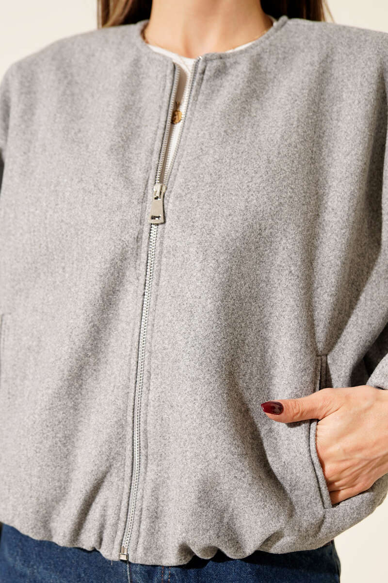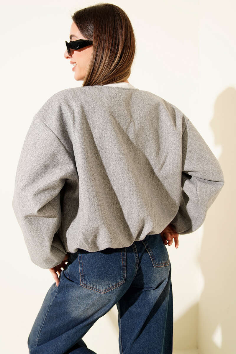 Bel Lastik Detaylı Kaşe Ceket Gri