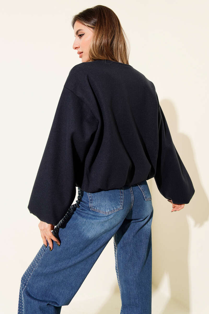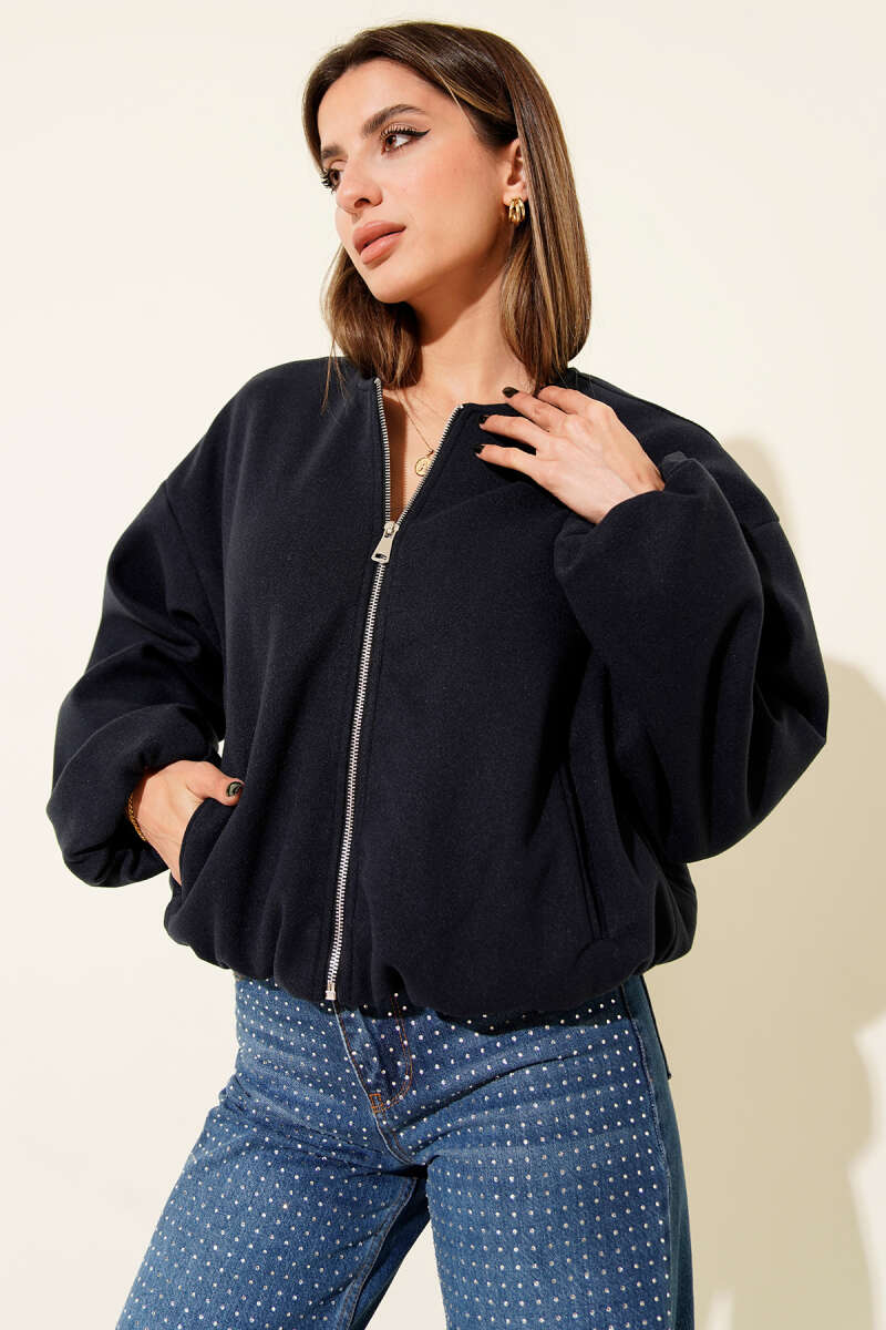 Kapşonlu Üç İpli Fermuarlı Hırka Siyah