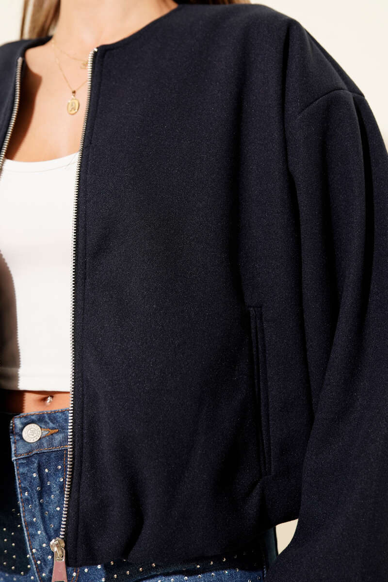 Kapşonlu Üç İpli Fermuarlı Hırka Koyu Lacivert