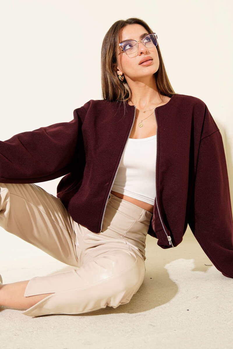 Kapşonlu Üç İpli Fermuarlı Hırka Kahve