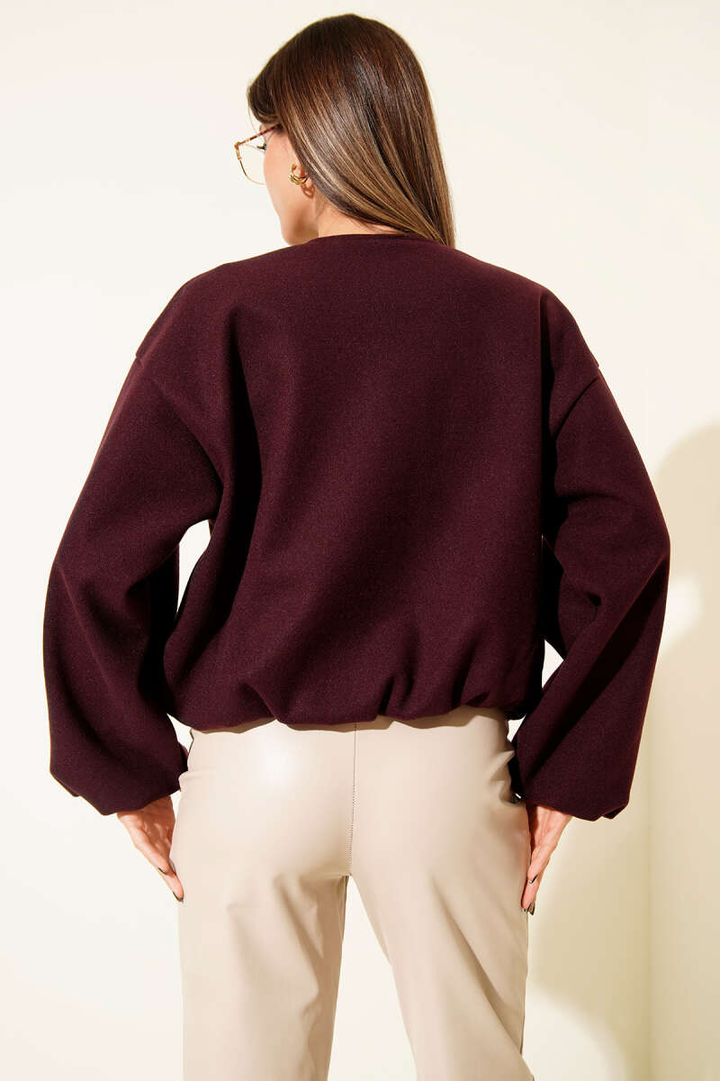 Bel Lastik Detaylı Kaşe Ceket Kahve
