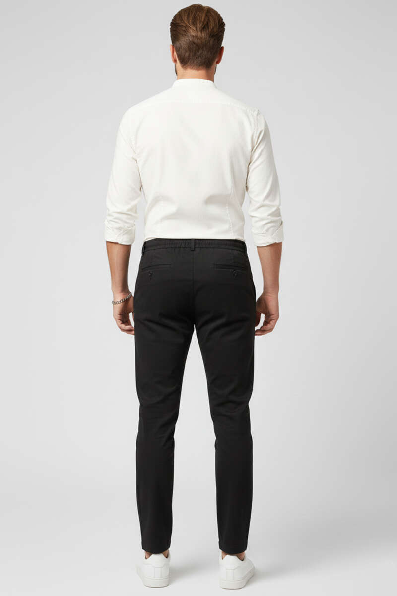 Bel Lastikli Bağcıklı Erkek Pantolon Siyah
