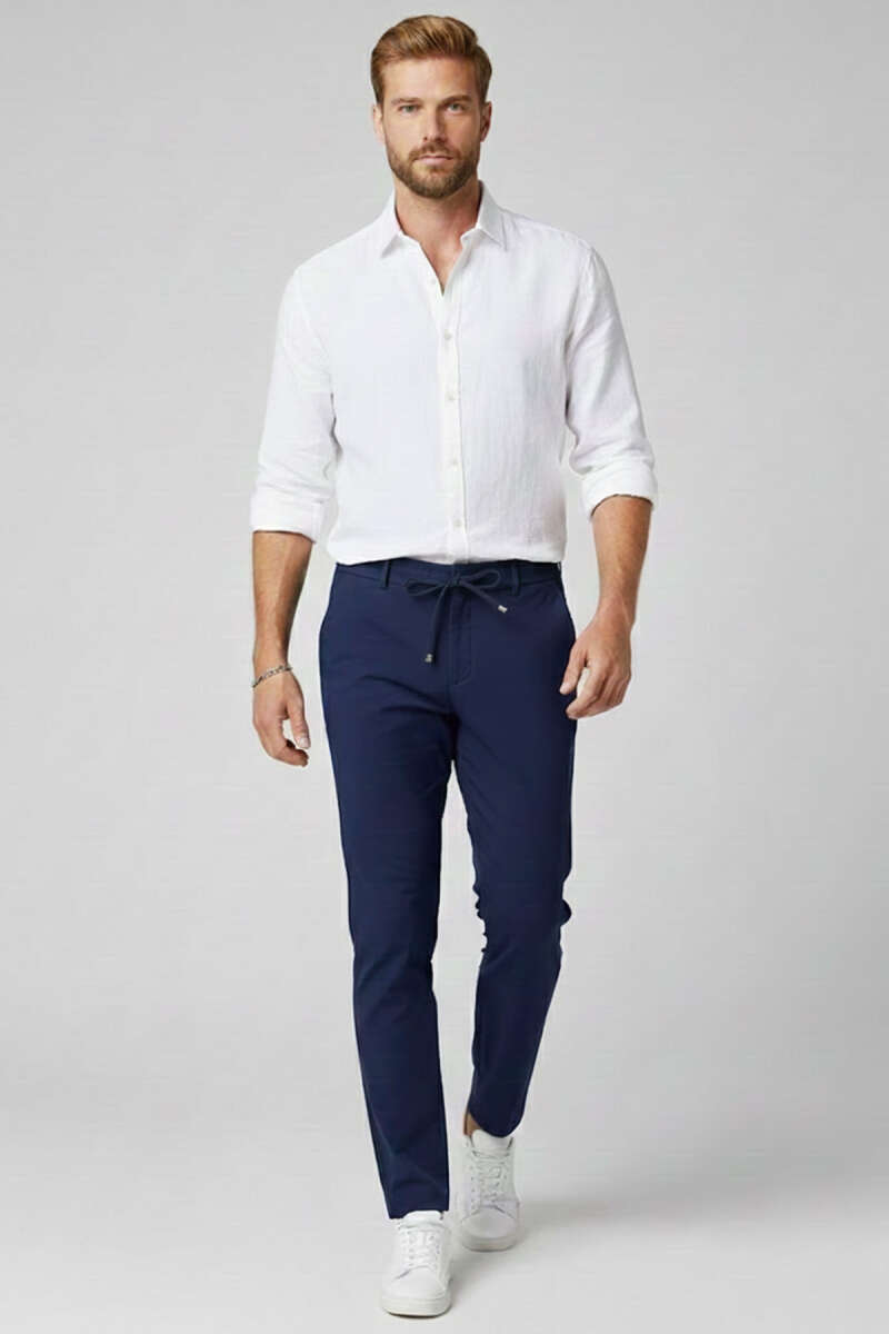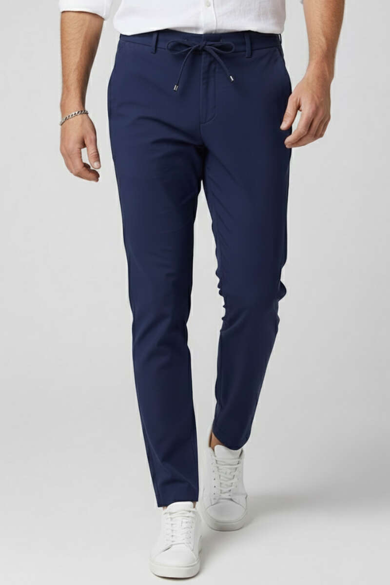 Beli Lastikli Bağlamalı Erkek Pantolon Lacivert