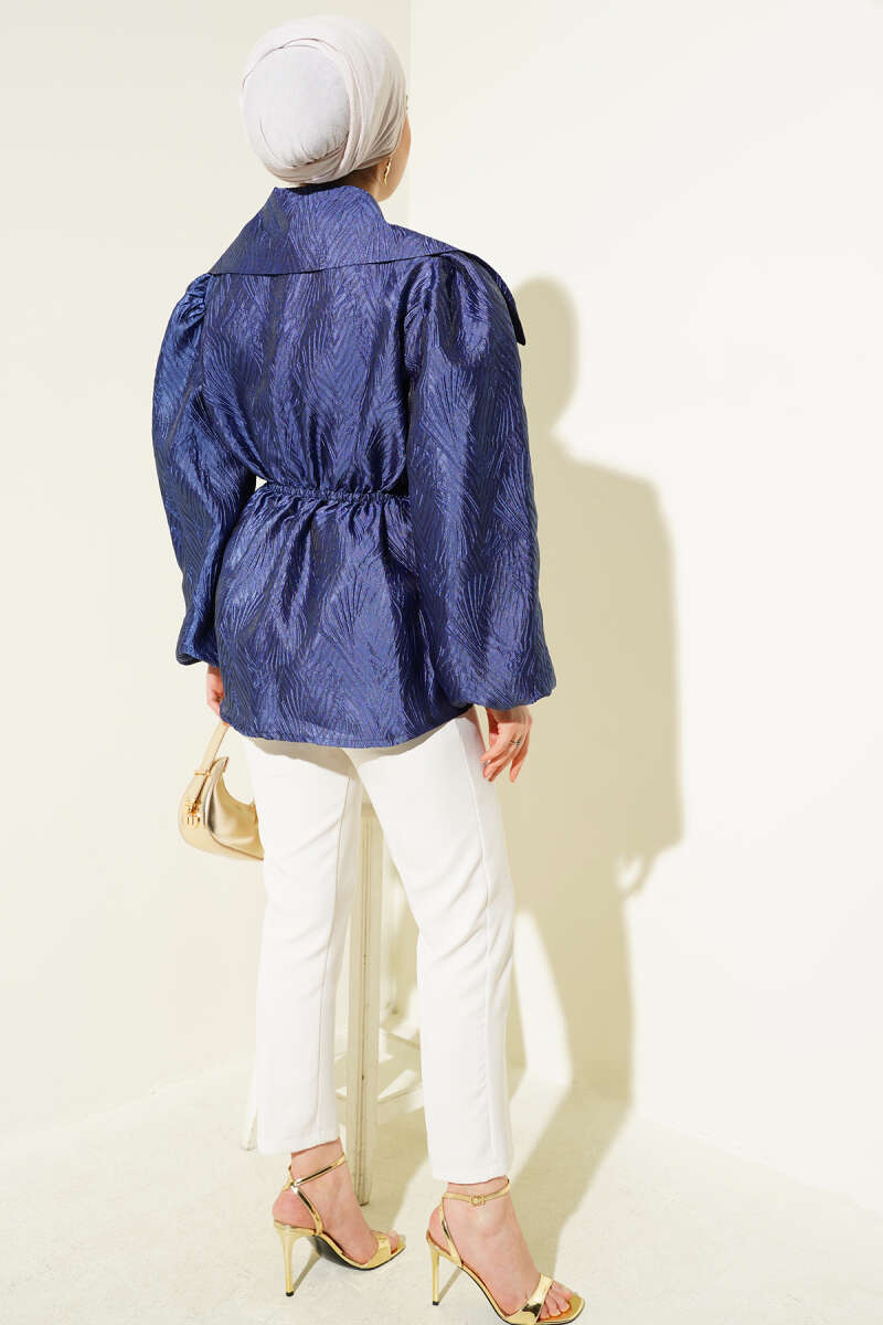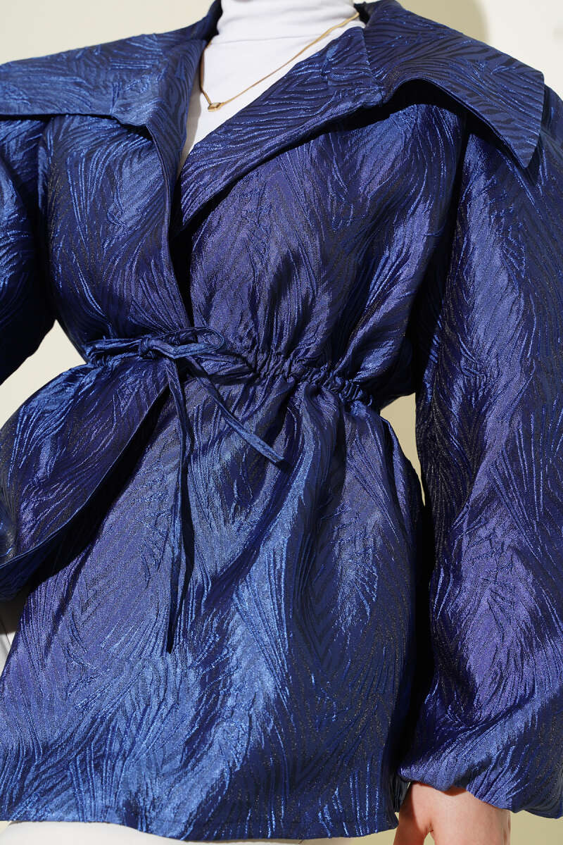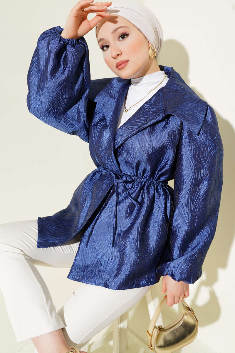 Bel Lastikli Balon Kol Jakar Ceket Lacivert