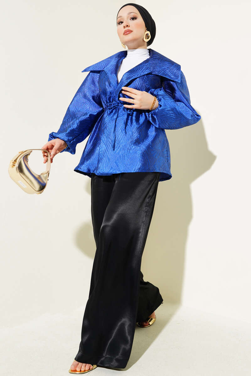 Bel Lastikli Balon Kol Jakar Ceket Saks