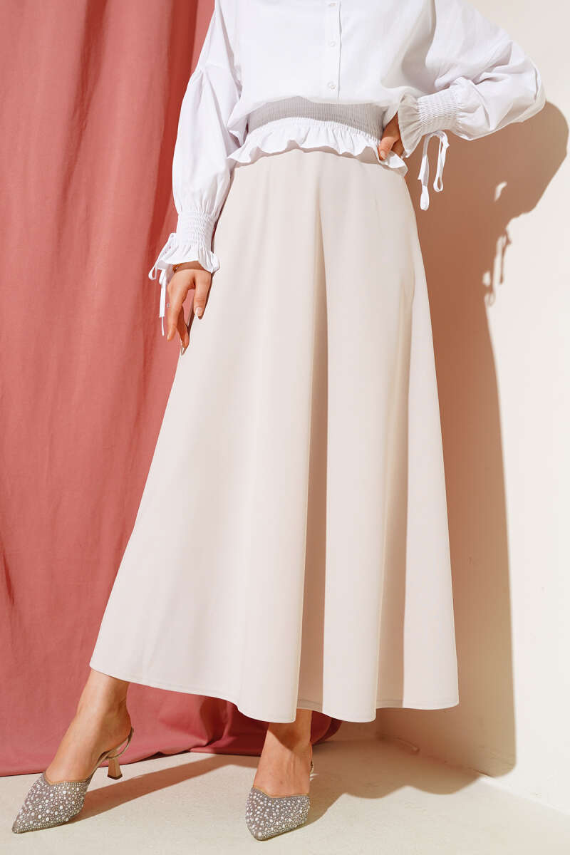 Beli Lastikli Kloş Basic Etek Bej
