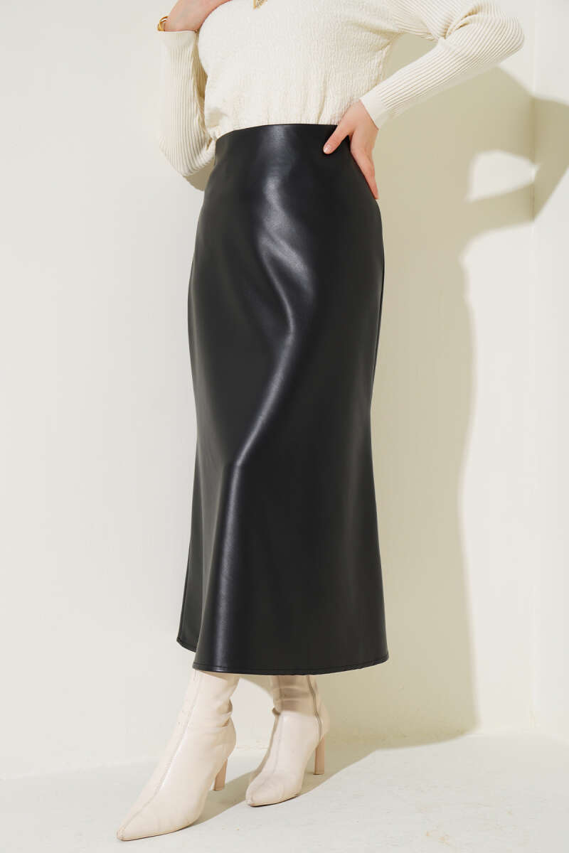 Kemer Aksesuarlı Ekoseli Etek Füme