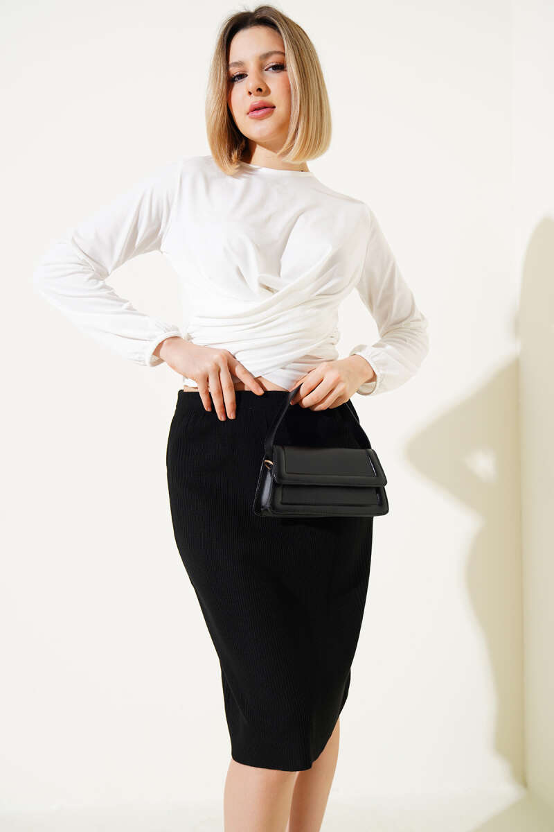 Fitilli Boğazlı Body Siyah