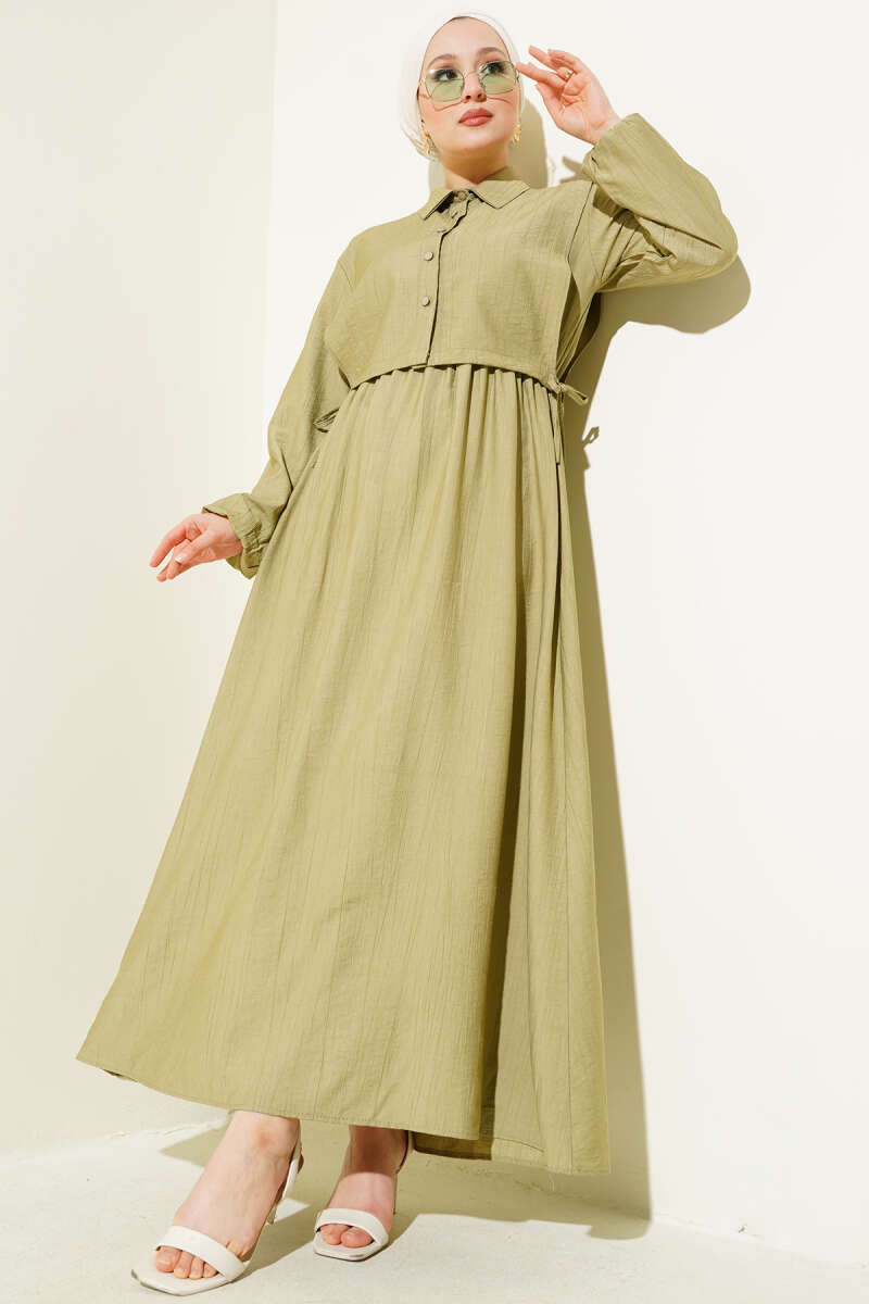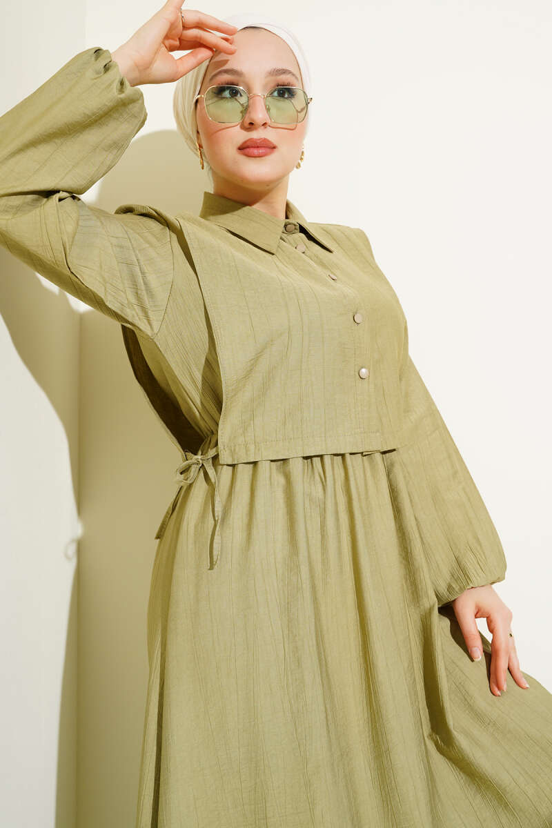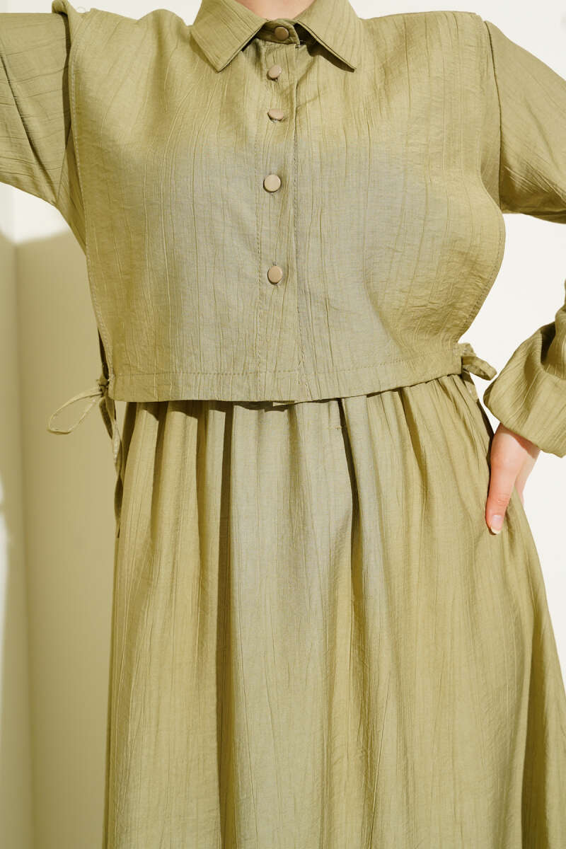 Gömlek Yaka Düğmeli Triko Elbise Nefti