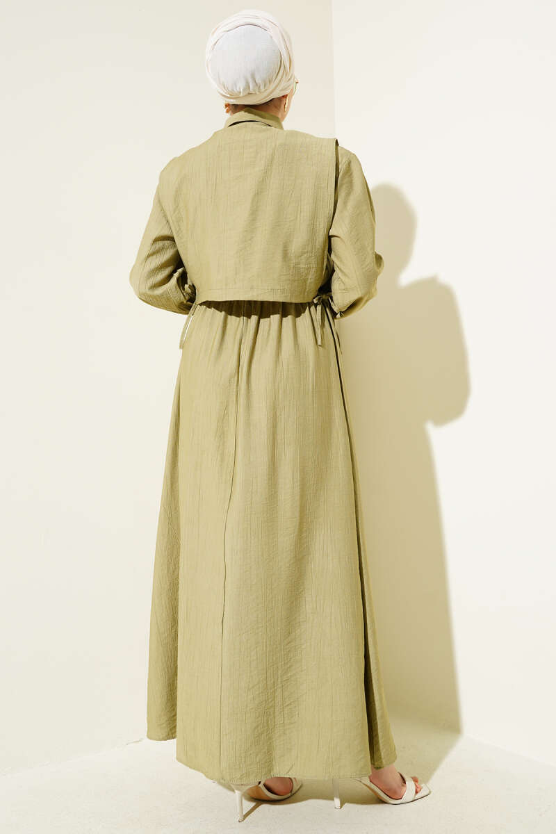 Taş Düğmeli Kuşaklı Goldfox Kaban Bej