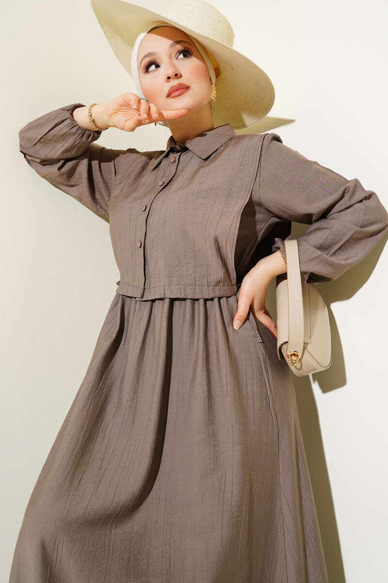 Gömlek Yaka Düğmeli Triko Elbise Kahve