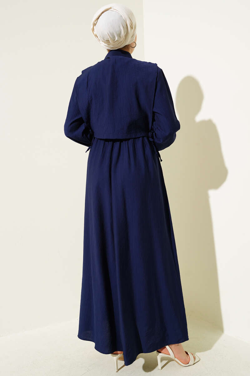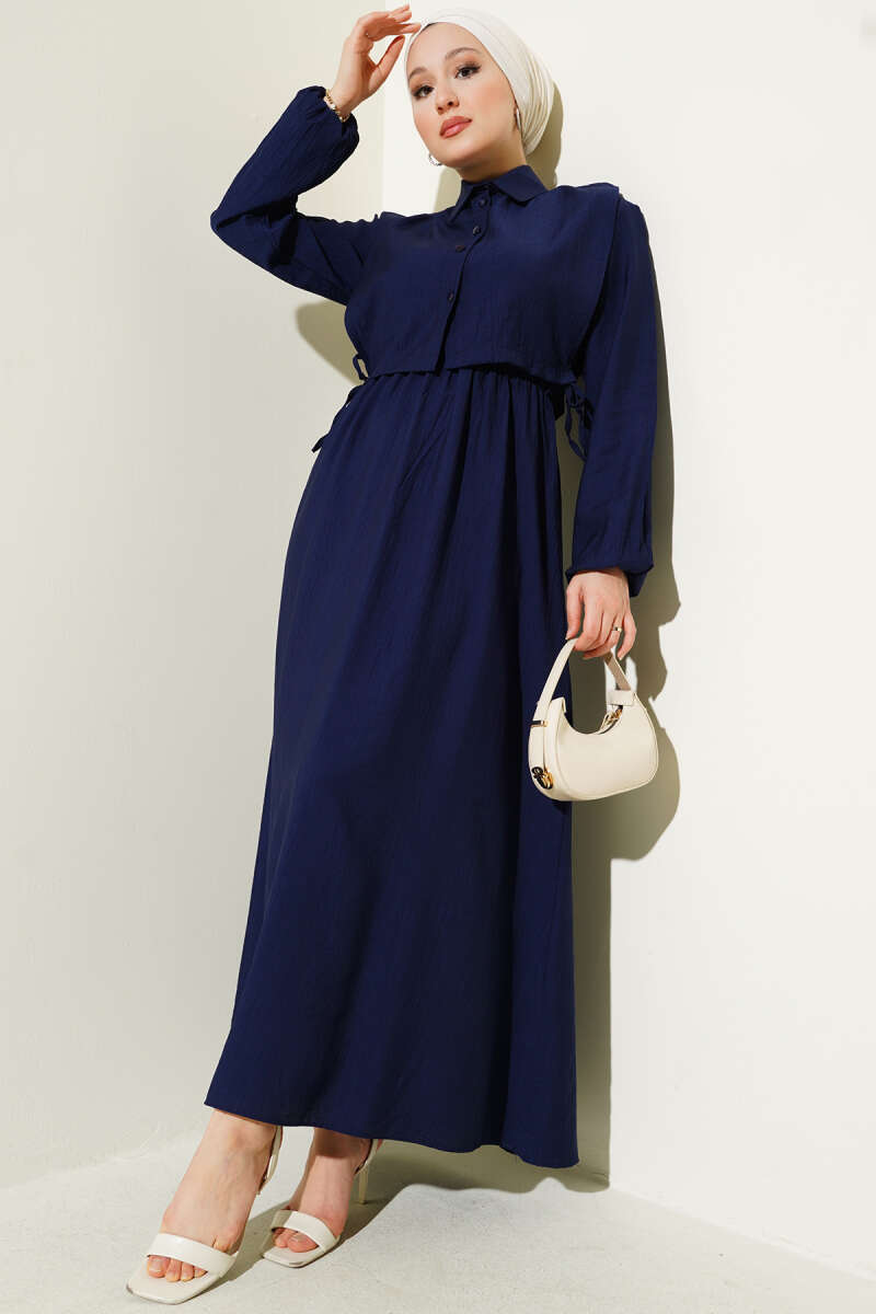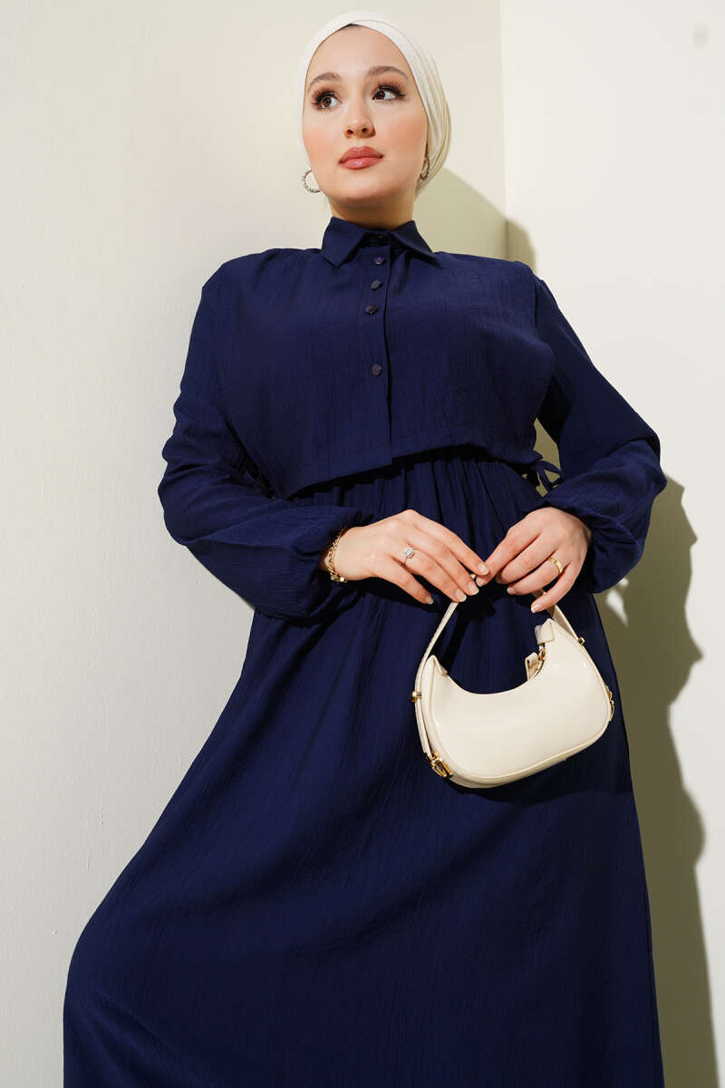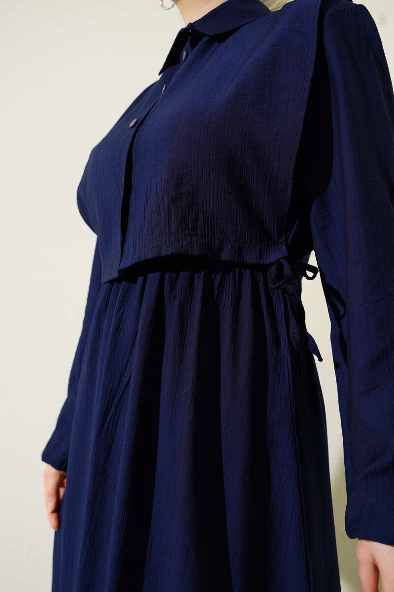 Gömlek Yaka Düğmeli Triko Elbise Lacivert