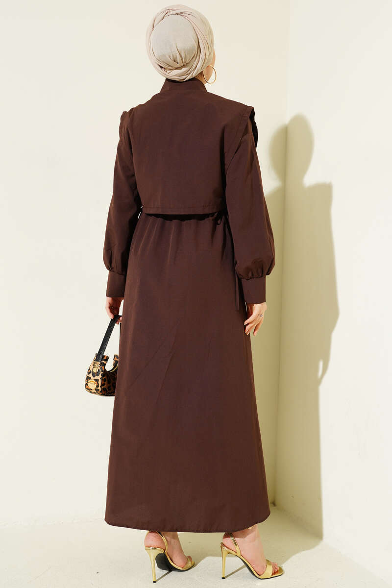 Bel Lastikli Bolerolu Terikoton Elbise Kahve
