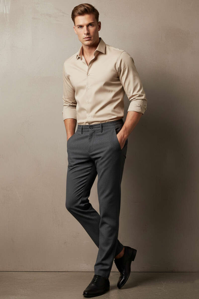 Bel Lastikli Boru Paça Erkek Pantolon Füme