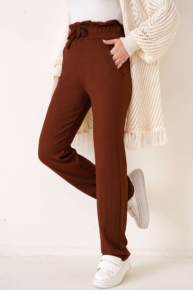 Yeni sezon bürümcük pantolon bel lastklidir. Çİft cepli olan pantolonumuzun cepleri kullanılabilmektedir. Belinde ip bağlaması da bulunan pantolonumuz rahatlığınızın yanı sıra şık olmanızı da sağlayacaktır.