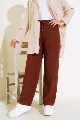 Yatay Çizgili Fitilli Triko Tunik Kahve